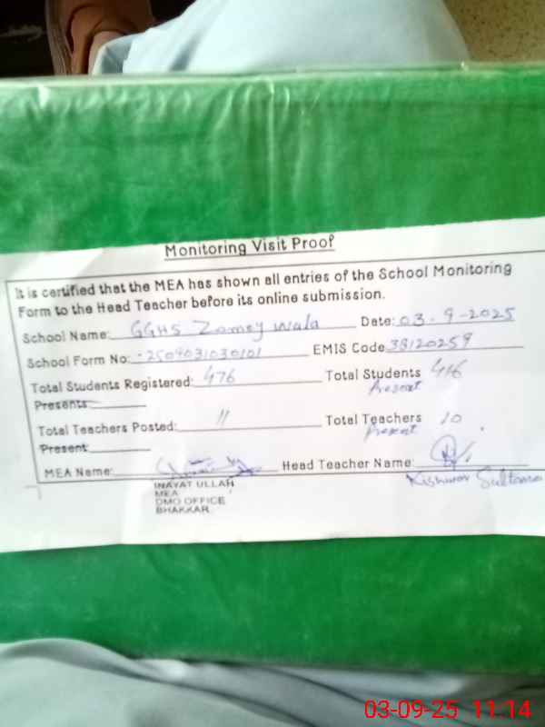 | EMIS Code: 38120259 | Name of School: GGHS ZAMMY WALA | |||
