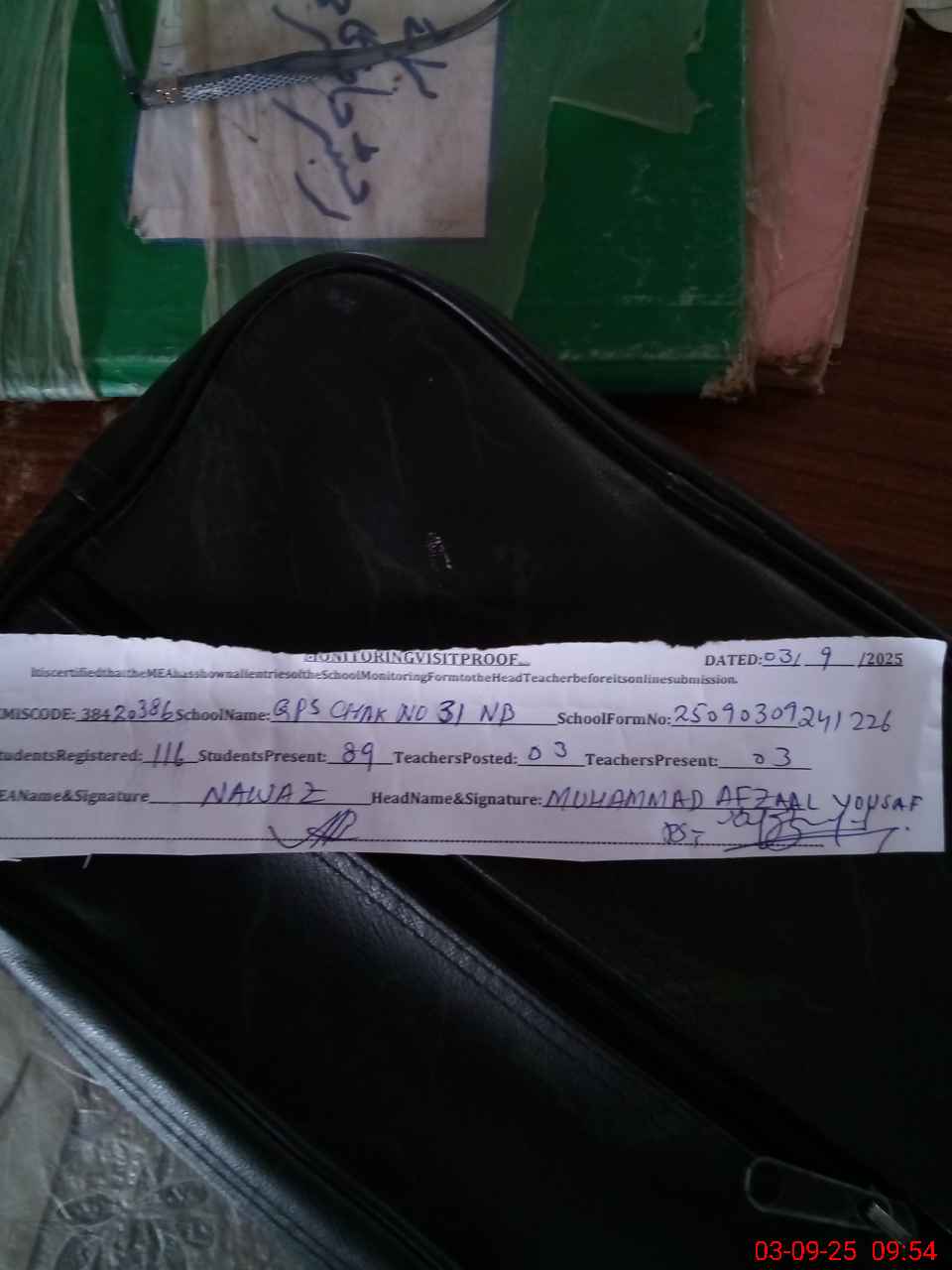 | EMIS Code: 38420386 | Name of School: GPS CHAK NO.31 NB | |||