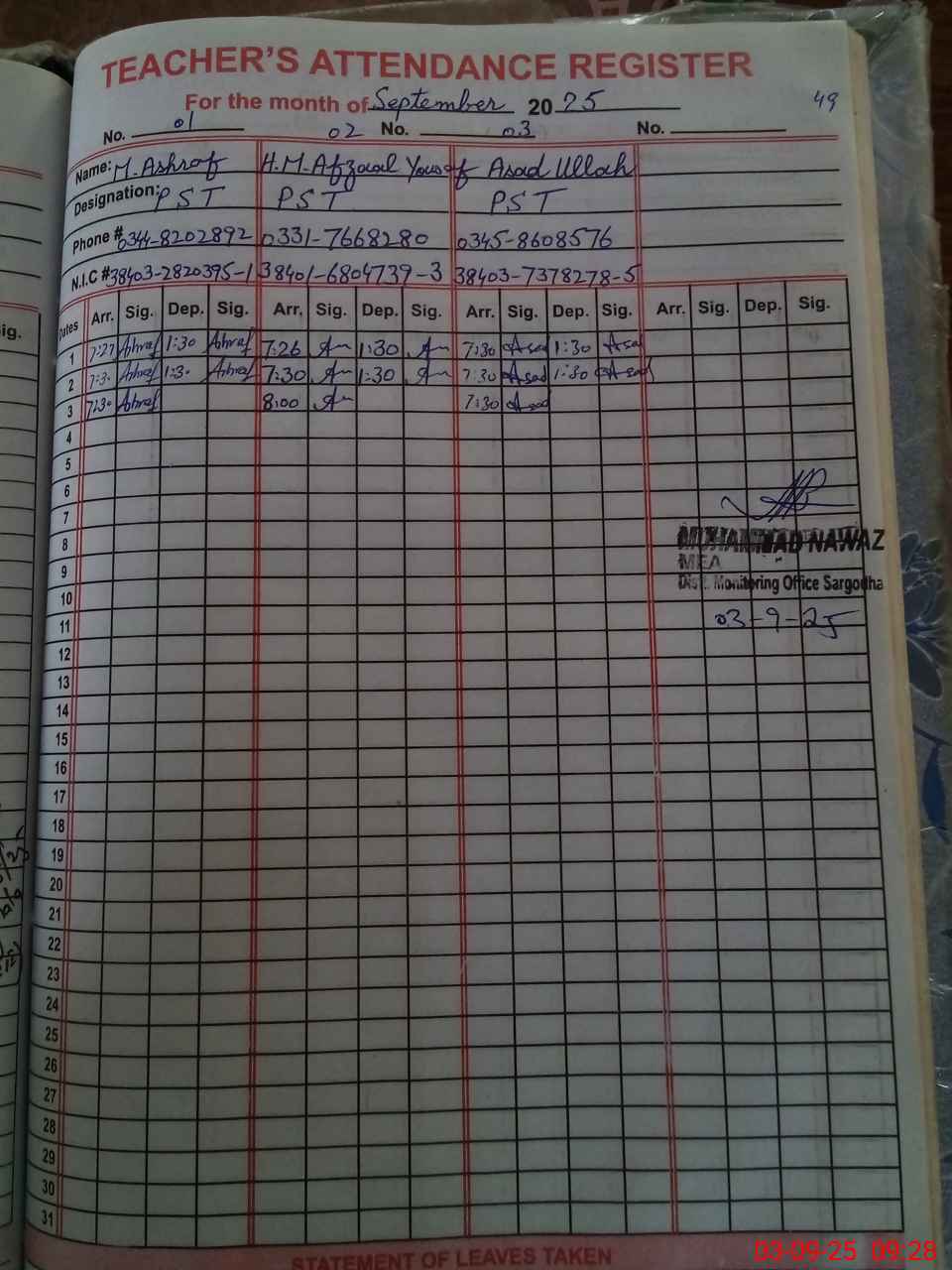 | Name: MU**** AS**** Designation: (School Headmaster's/Headmistress's) PST Phone/Cell Number: 03**** 82**** |