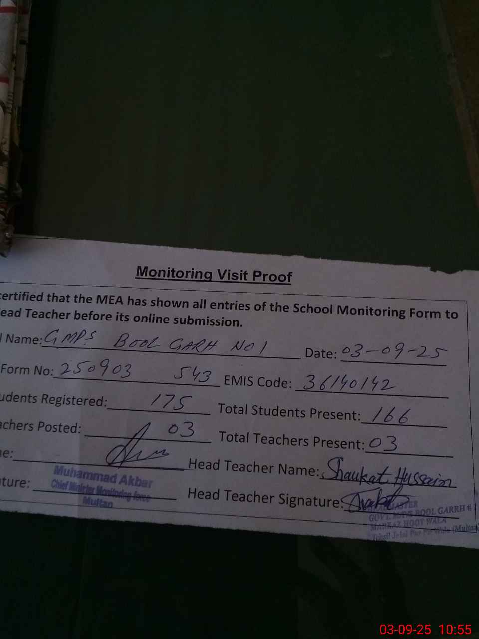 | EMIS Code: 36140142 | Name of School: GMPS BOOL GARH NO.1 | |||