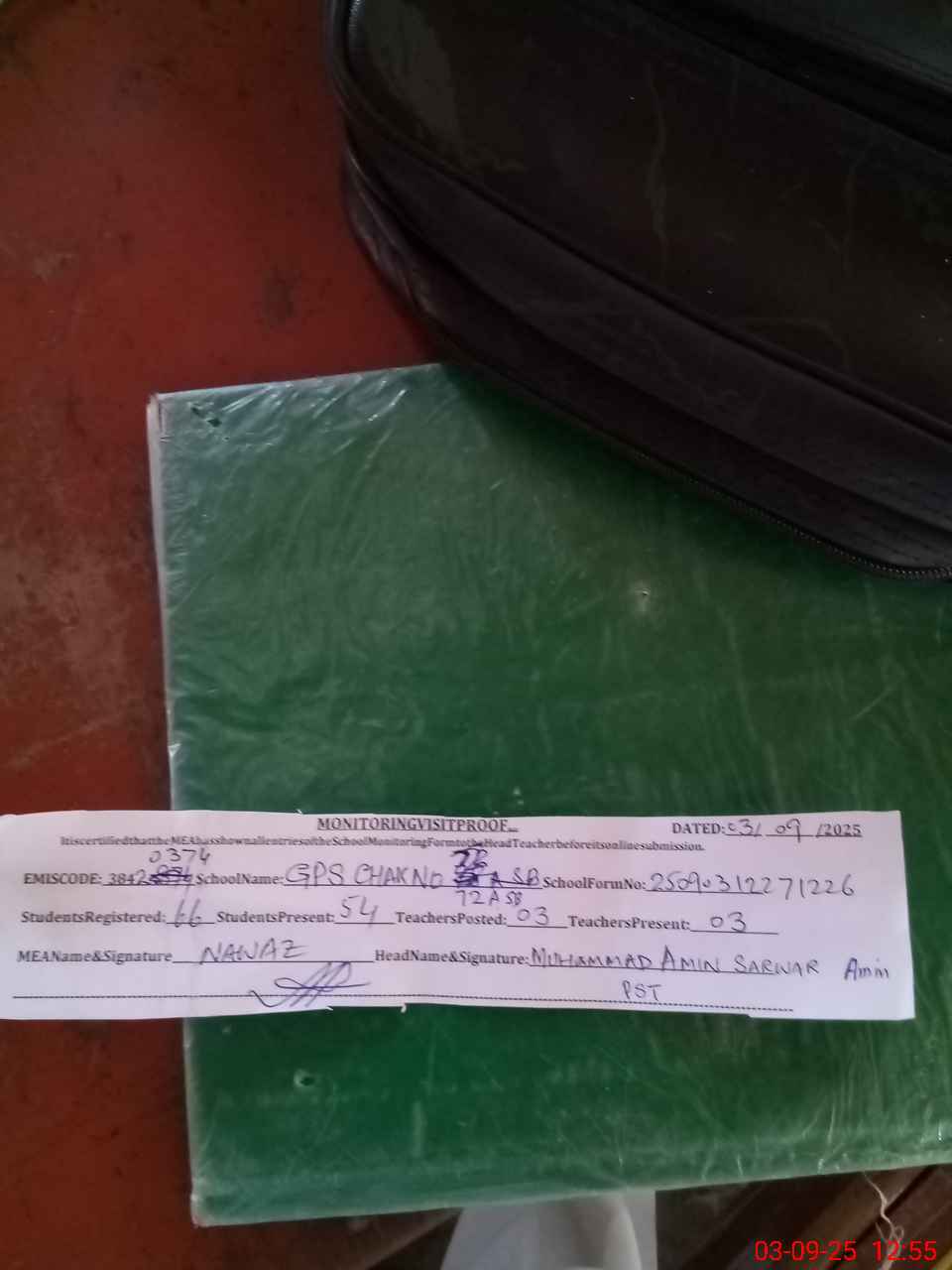 | Attendance Register | Head Teacher | MEA with School | Visit Proof |