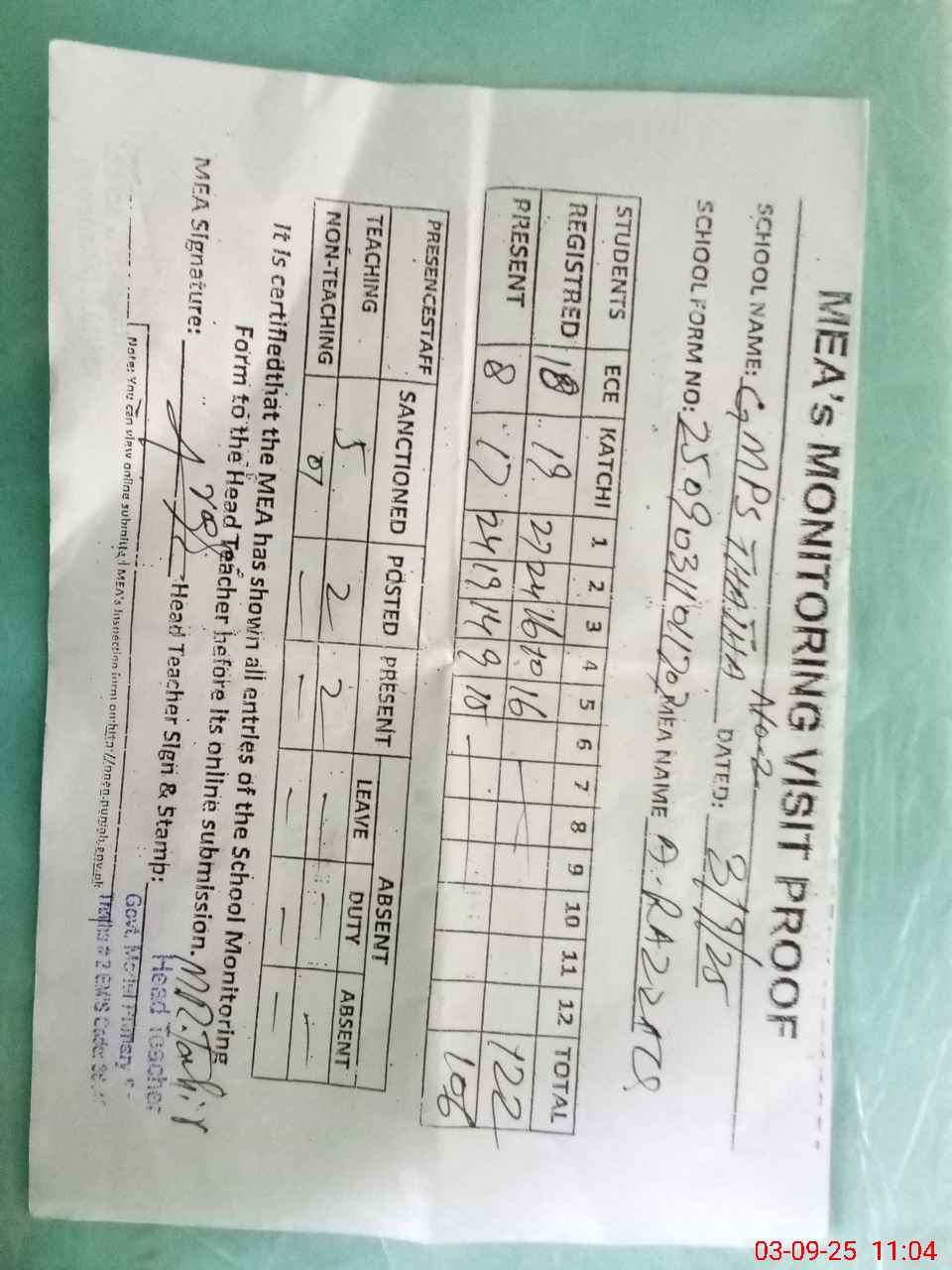 | EMIS Code: 36440495 | Name of School: GMPS THATHA NO.2 JAHANIAN | |||