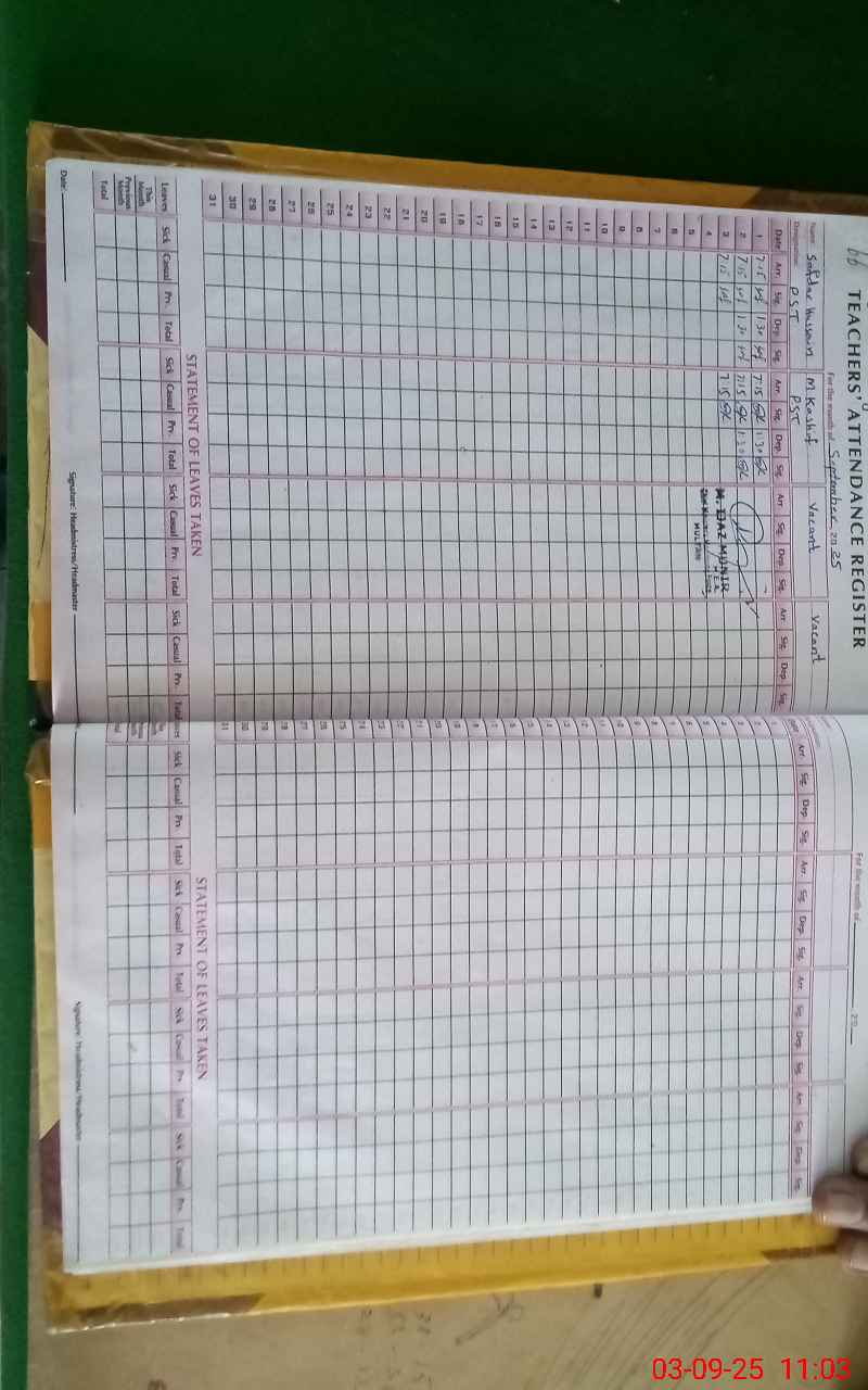 | Name: SA**** HU**** Designation: (School Headmaster's/Headmistress's) PST/PTC/JV Phone/Cell Number: 03**** |