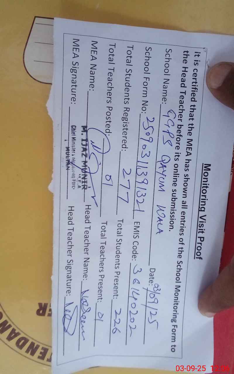 | EMIS Code: 36140202 | Name of School: GGPS QAYYUM WALA JALALPUR PIRWALA | |||