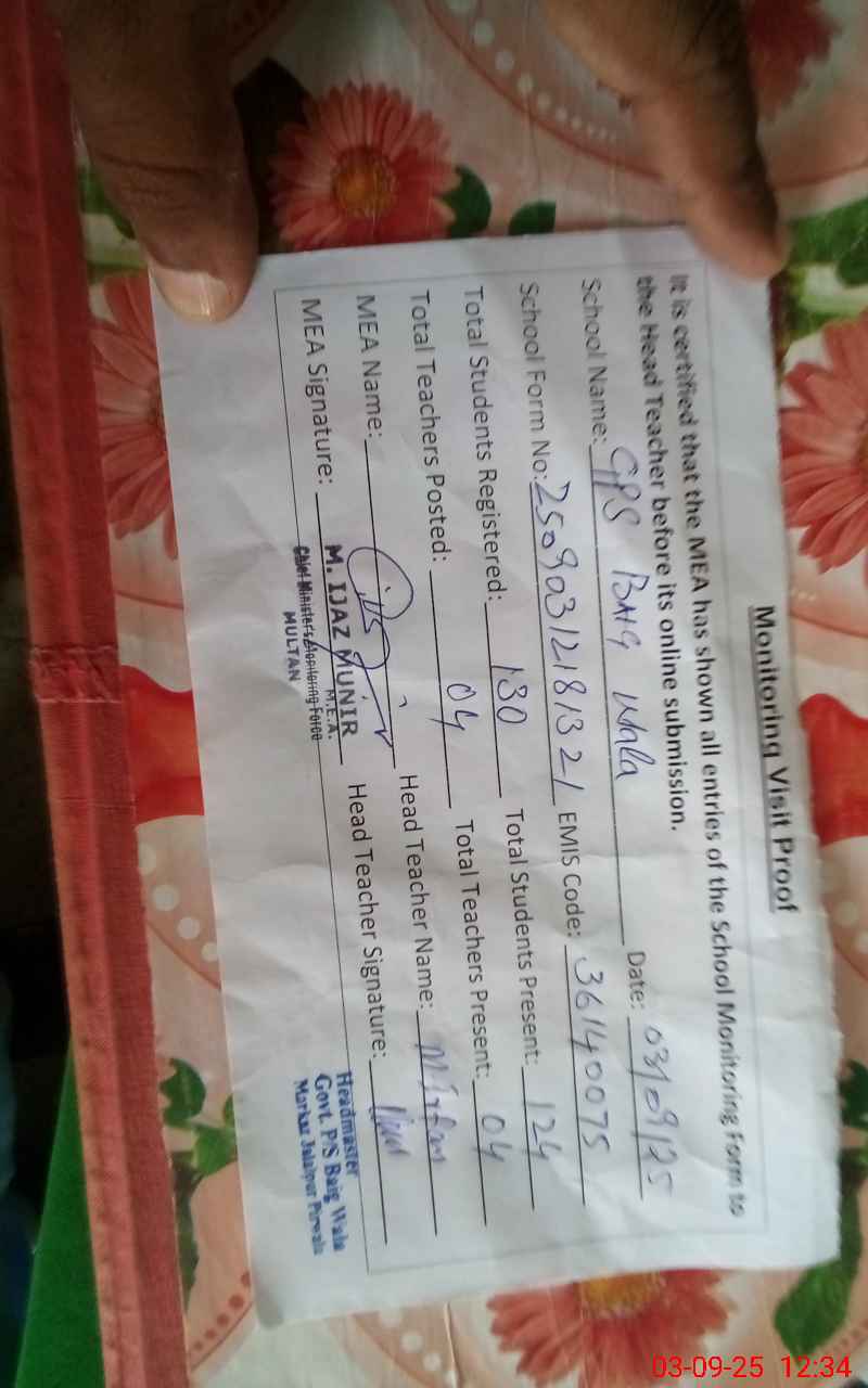 | EMIS Code: 36140075 | Name of School: GPS BAIG WALA MOZA P/O JALAL PUR PIR WALA | |||