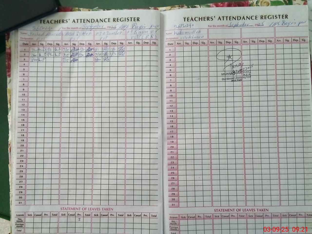 | Remarks (Use Separate Page if Required): STUDENT ATTENDANCE LIST OF PREVIOUS SESSION ONE STUDENT DIFFERENCE IN SIS ROZNAMCHA AND STUDENTS ATTENDENCE REGISTERS | |||||