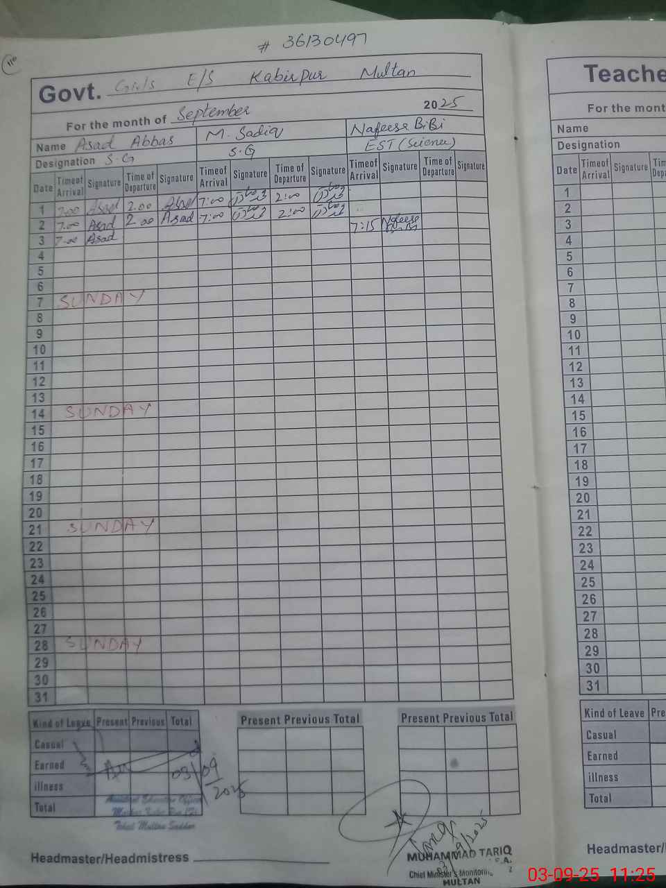 | 36**** | MU**** SA**** | SG | Regular | 0 | 0 | 0 | 0 | 0 | 0 | 0 | 0 | 0 | Absent (Un-Authorized) |