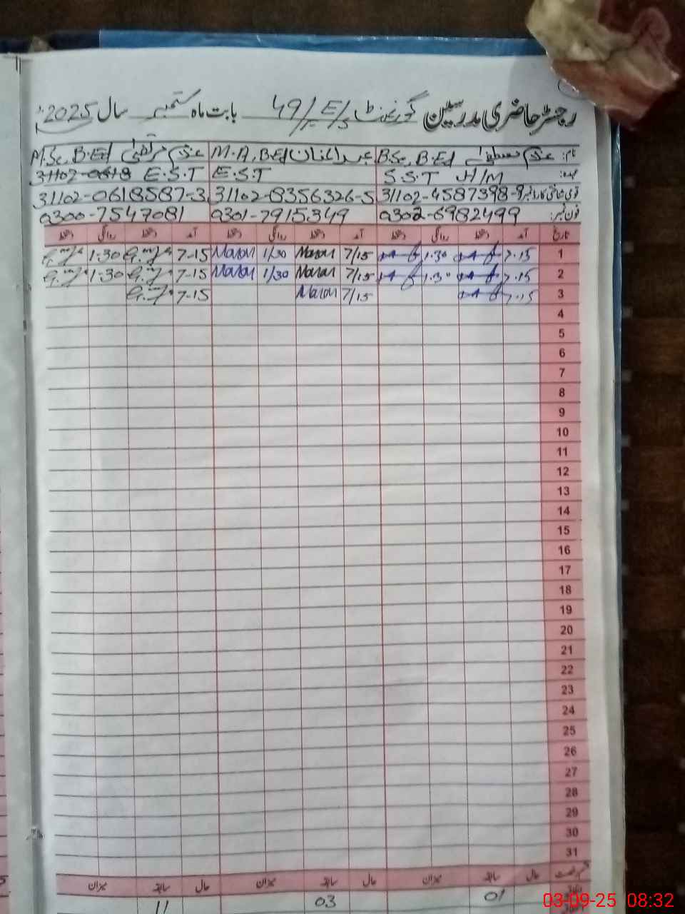 | Name: Gh**** Mu**** Designation: (School Headmaster's/Headmistress's) S.S.T. Phone/Cell Number: 03**** |