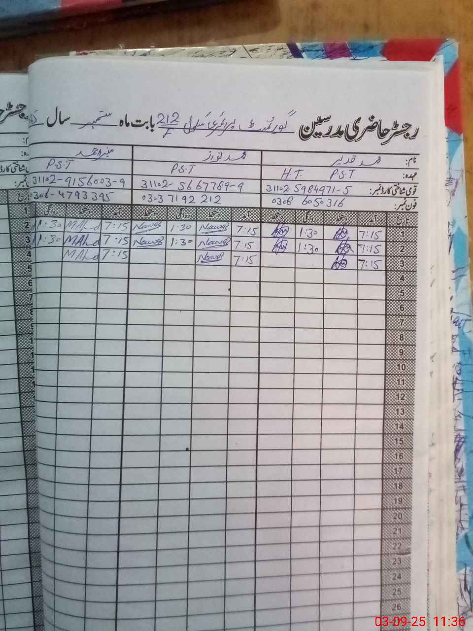 | Name: Mo**** Qa**** Designation: (School Headmaster's/Headmistress's) PST Phone/Cell Number: 03**** |