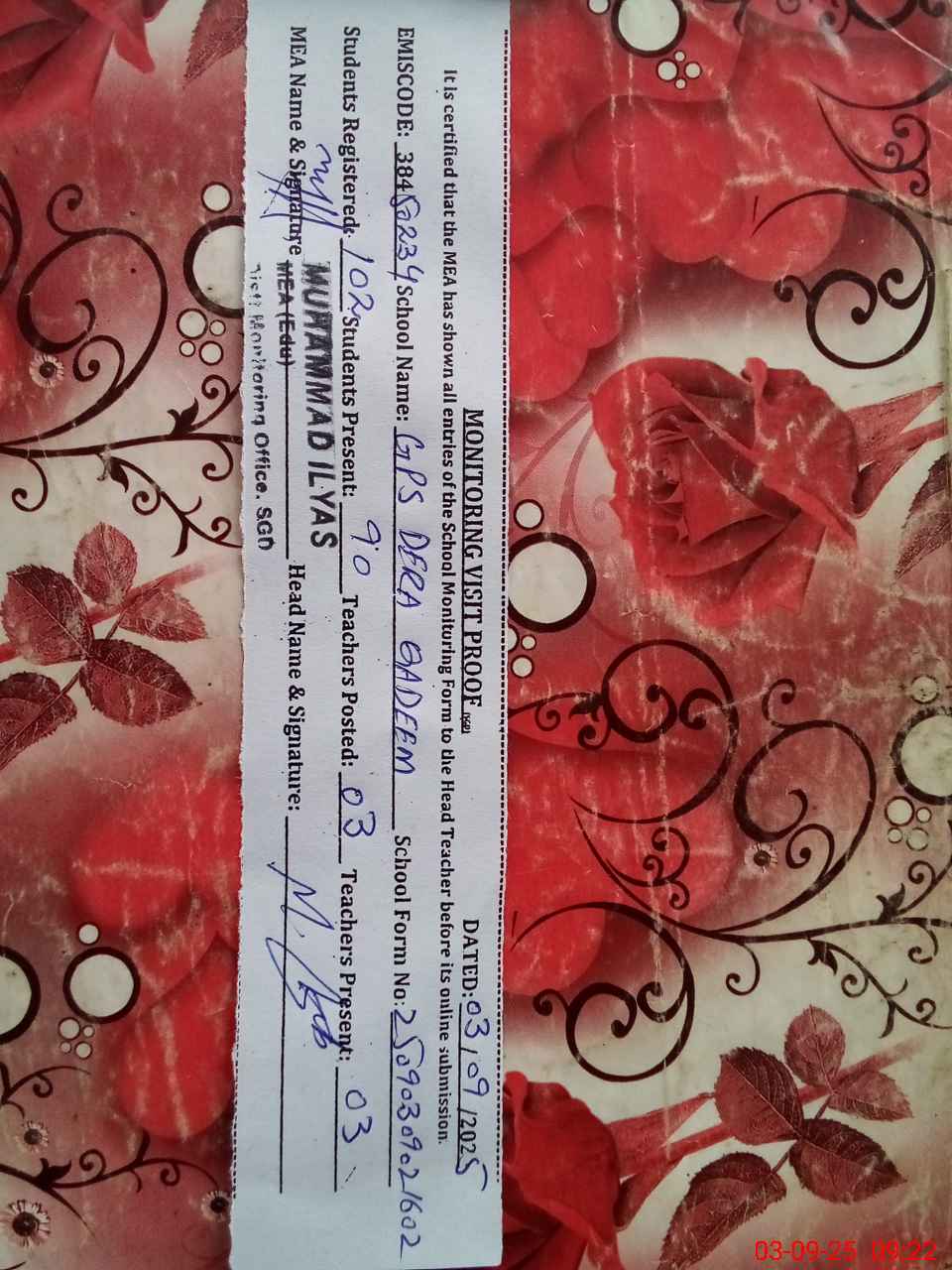 | EMIS Code: 38450234 | Name of School: GPS DERA QADEEM | |||