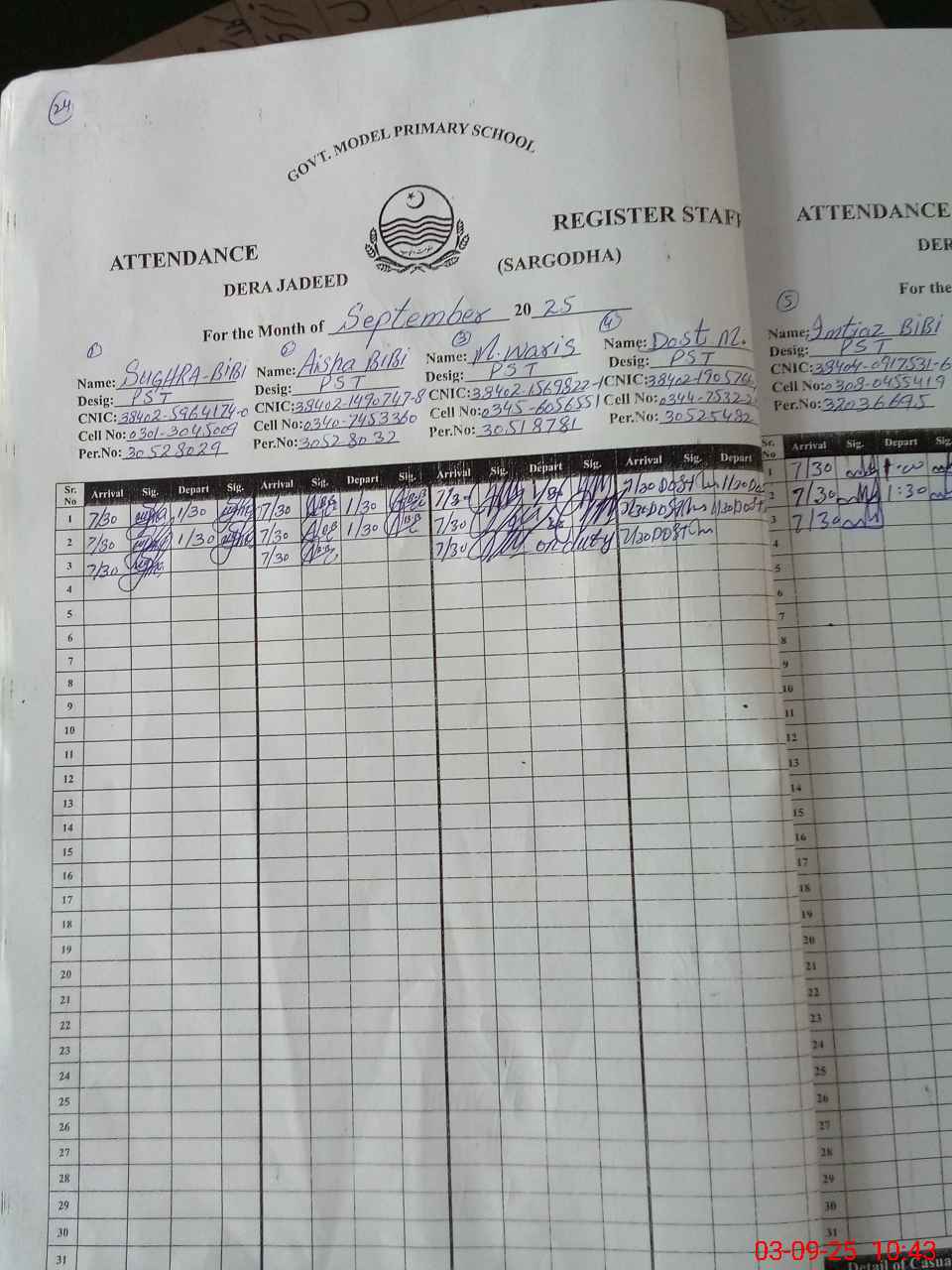 | Name: SU**** BI**** Designation: (School Headmaster's/Headmistress's) PST Phone/Cell Number: 03**** |