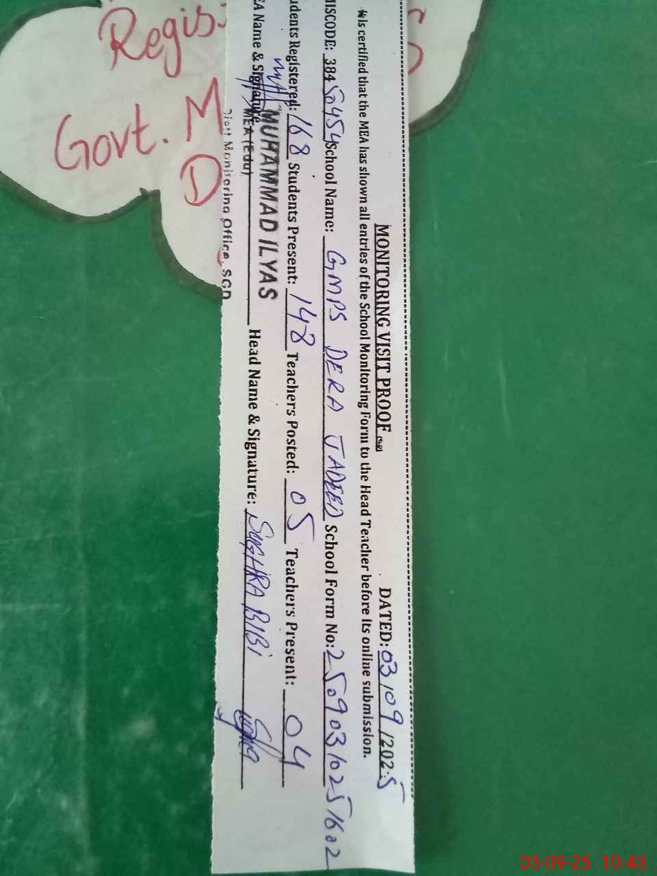 | EMIS Code: 38450454 | Name of School: GMPS DERA JADEED | |||