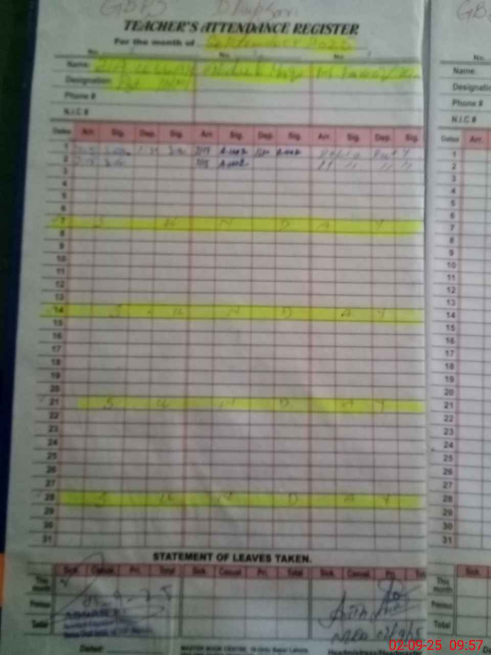 | Name: Mu**** Fa**** Kh**** Designation: (School Headmaster's/Headmistress's) PST Phone/Cell Number: 03**** |