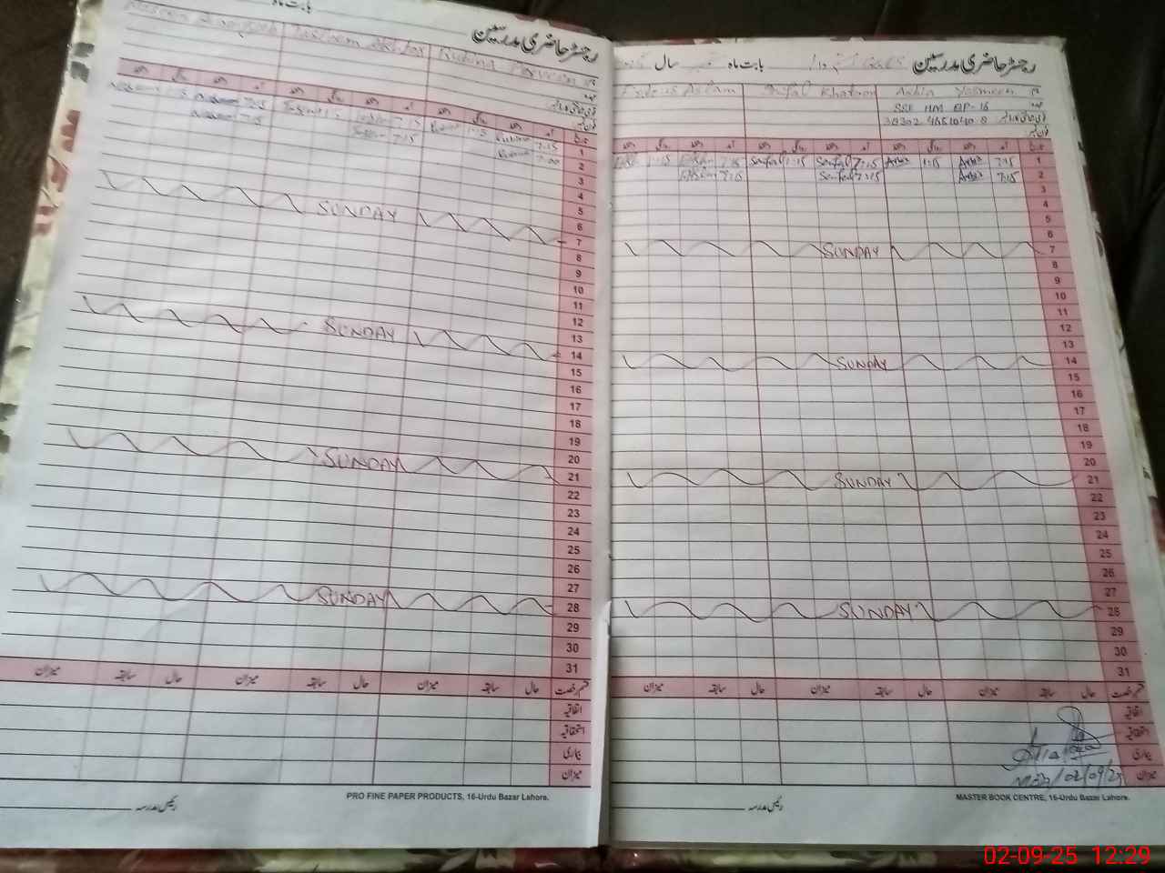| CNIC | Full Name | Designation | R/C | Absence During Last Calender Month |