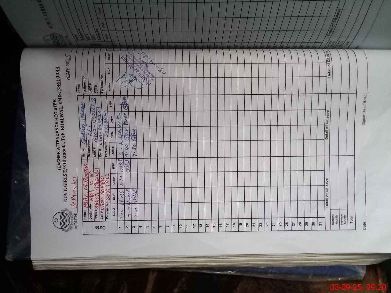 | Name: SA**** AS**** Designation: (School Headmaster's/Headmistress's) EST (Art) Phone/Cell Number: 03**** |