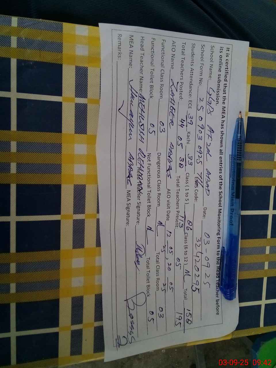 | EMIS Code: 32420295 | Name of School: GGPS AFZAL ABAD | |||