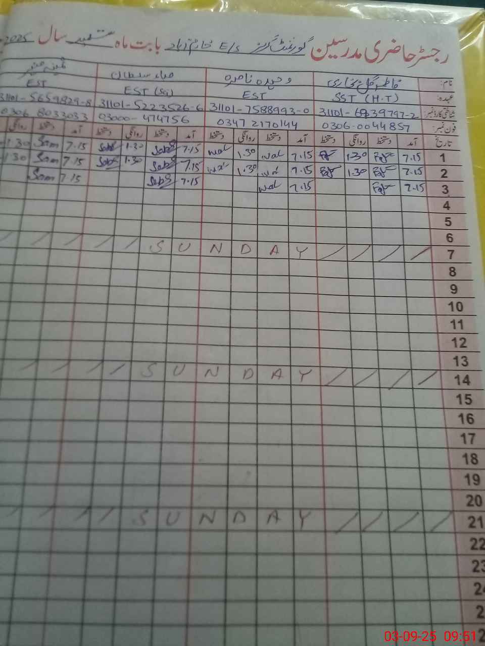 | Name: Wa**** Na**** Designation: (School Headmaster's/Headmistress's) EST Phone/Cell Number: 03**** |