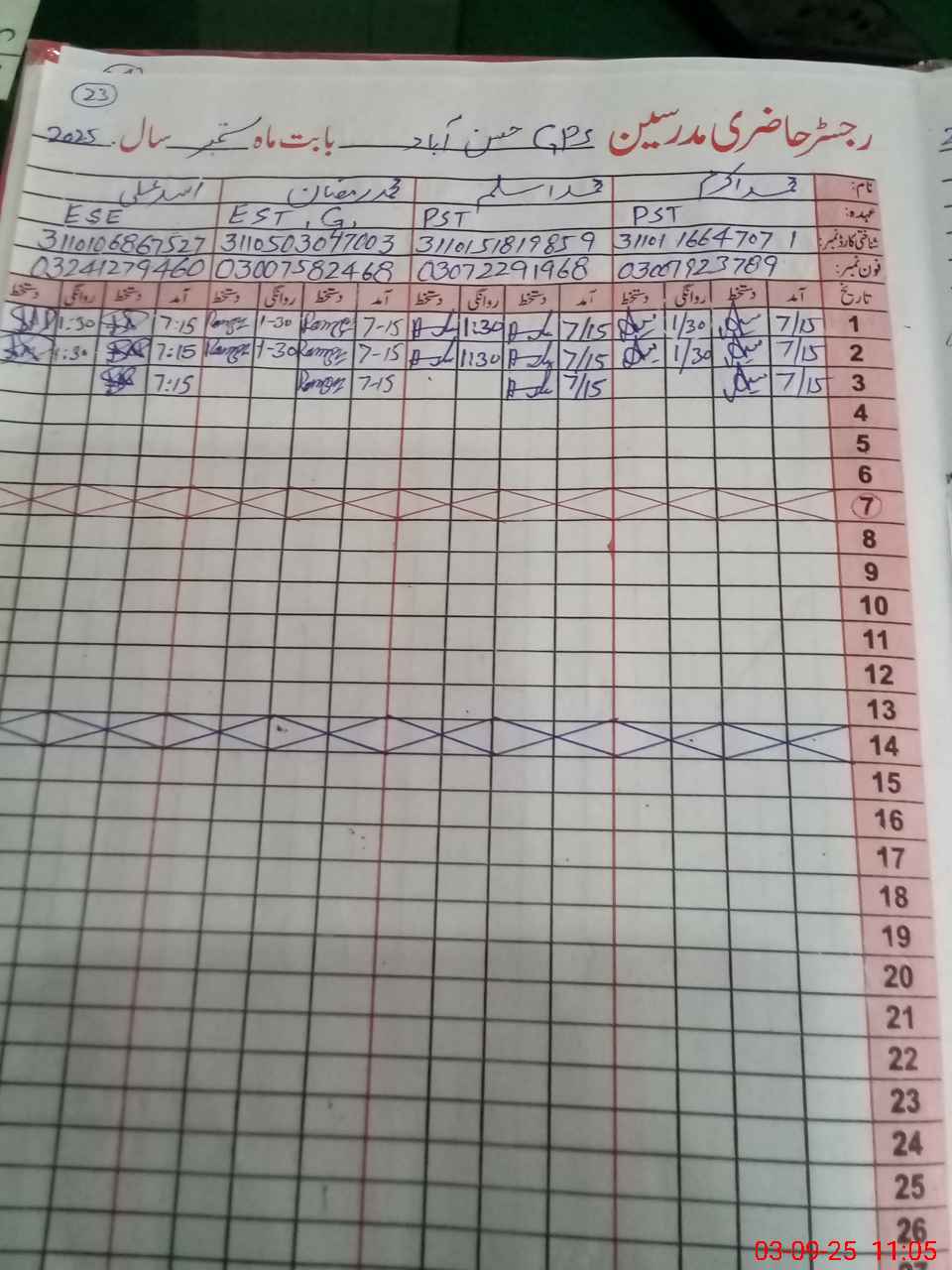 | Name: As**** Al**** Designation: (School Headmaster's/Headmistress's) PST Phone/Cell Number: 03**** |