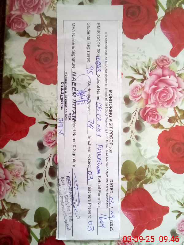 | EMIS Code: 38410843 | Name of School: GPS CHAK NO.1 NB HAYAT ROAD PHULARWAN | |||