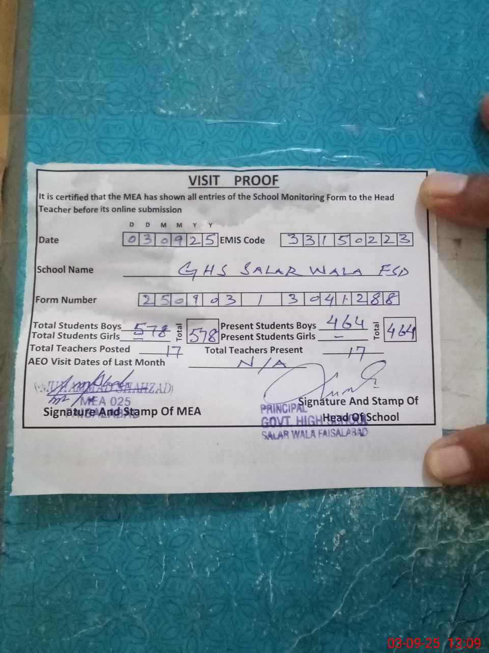 | EMIS Code: 33150223 | Name of School: GHS SALARWALA CHAK JHUMRA FSD | |||