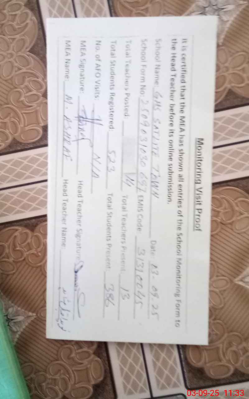 | EMIS Code: 31310045 | Name of School: GHS SATELLITE TOWN KHANPUR | |||