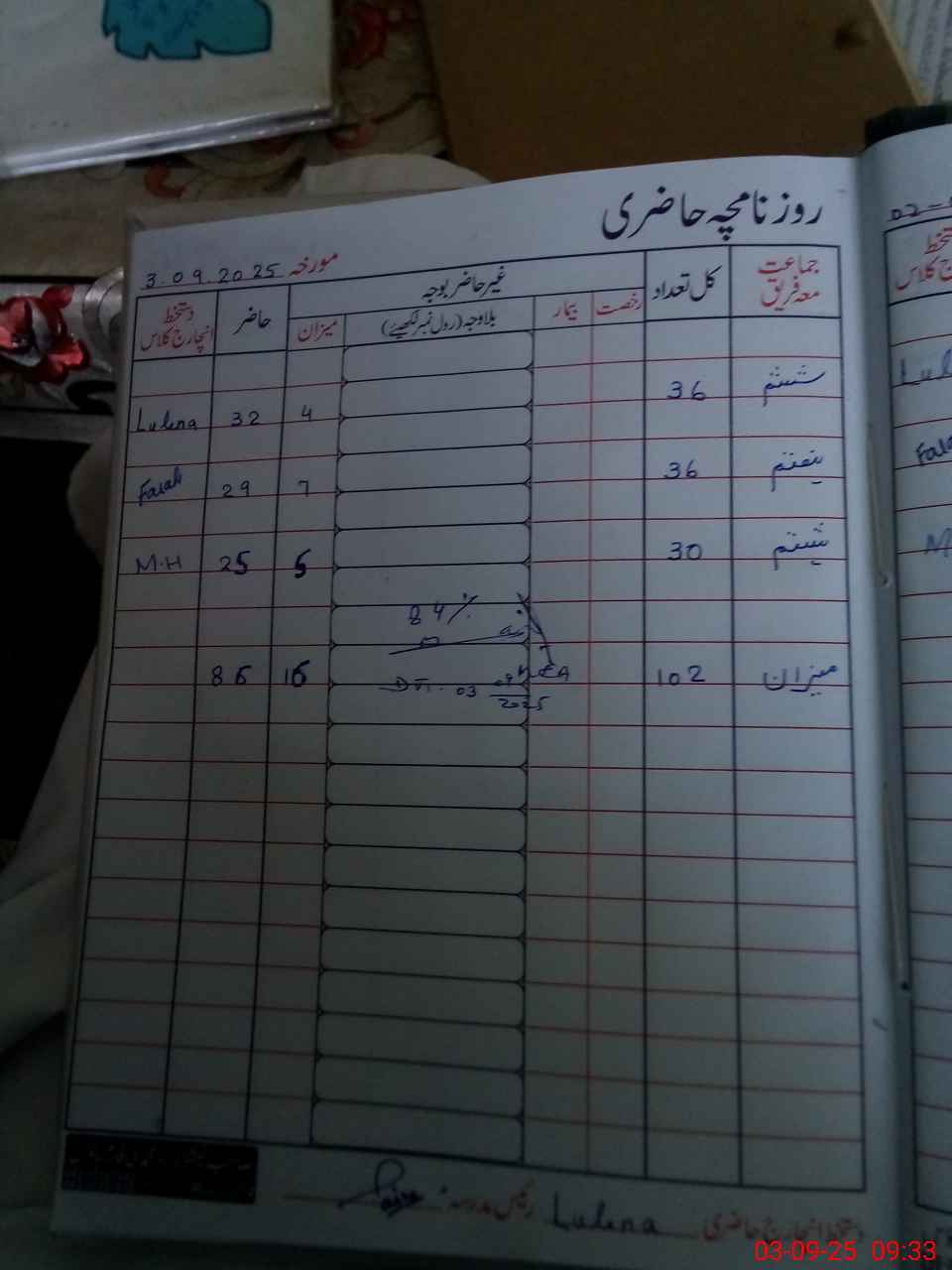 | Total Students Present | 0 | 0 | 0 | 0 | 0 | 0 | 0 | 0 | 32 | 29 | 25 | 86 | ||||