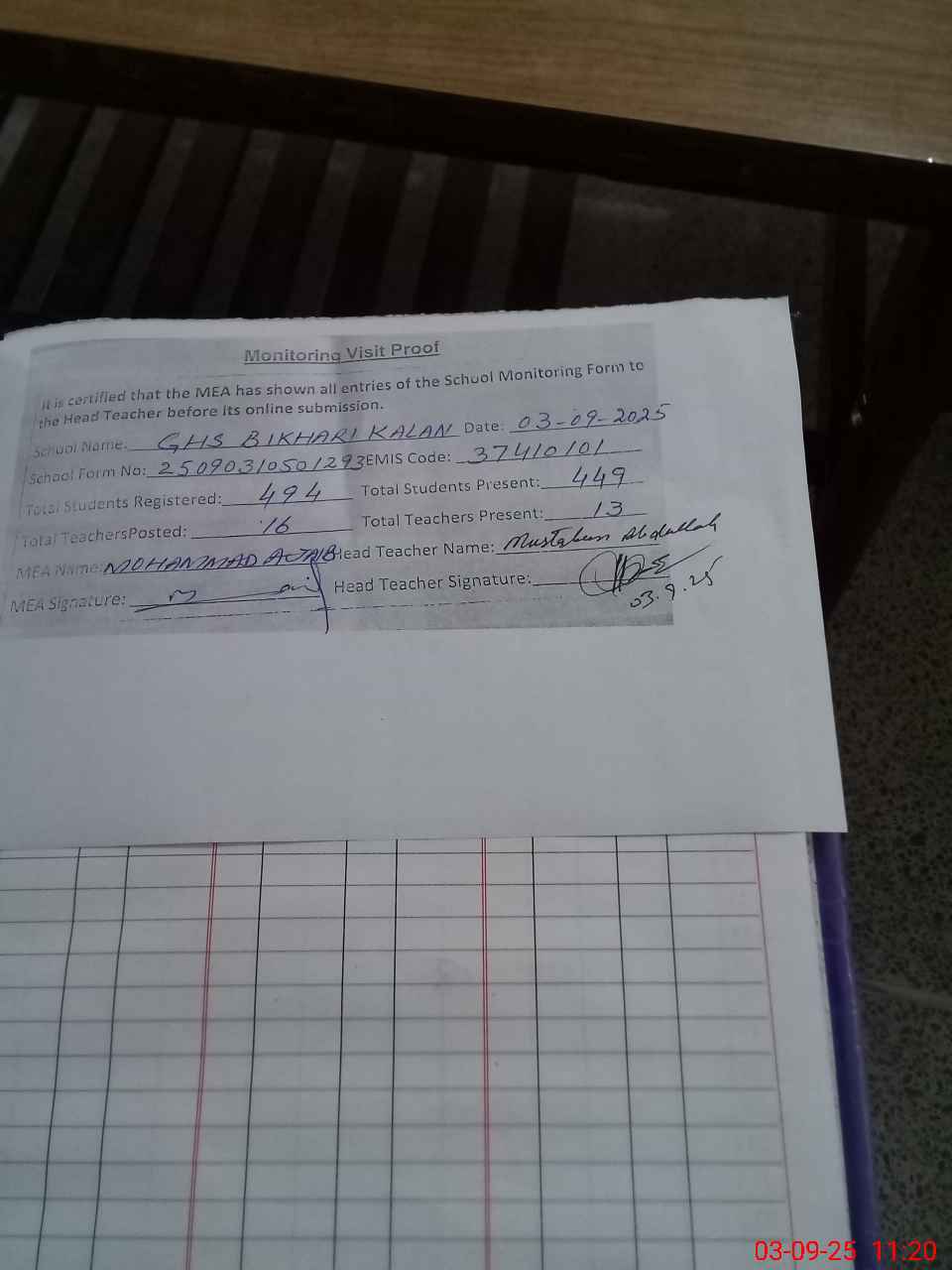 | EMIS Code: 37410101 | Name of School: GHS BIKHARI KALAN | |||