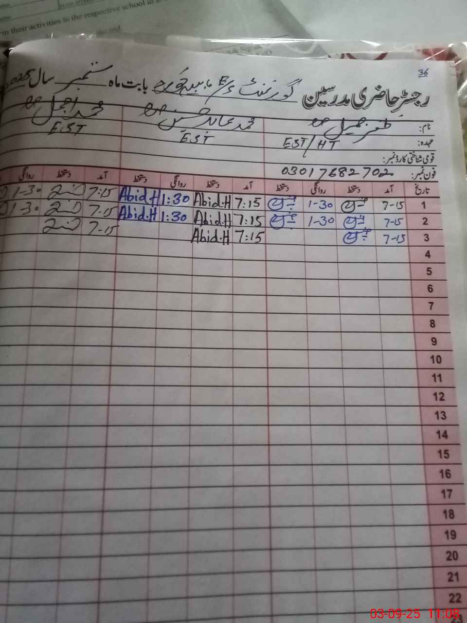 | Name: Za**** Ja**** Designation: (School Headmaster's/Headmistress's) EST Phone/Cell Number: 03**** |