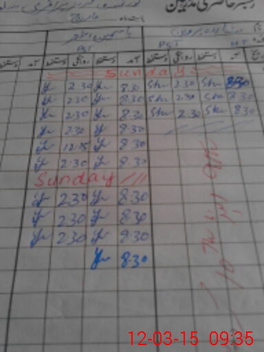 | CNIC | Full Name | Designation | R/C | Absence During Last Calender Month |