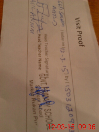 | Attendance Register | Head Teacher | MEA with School | Visit Proof |