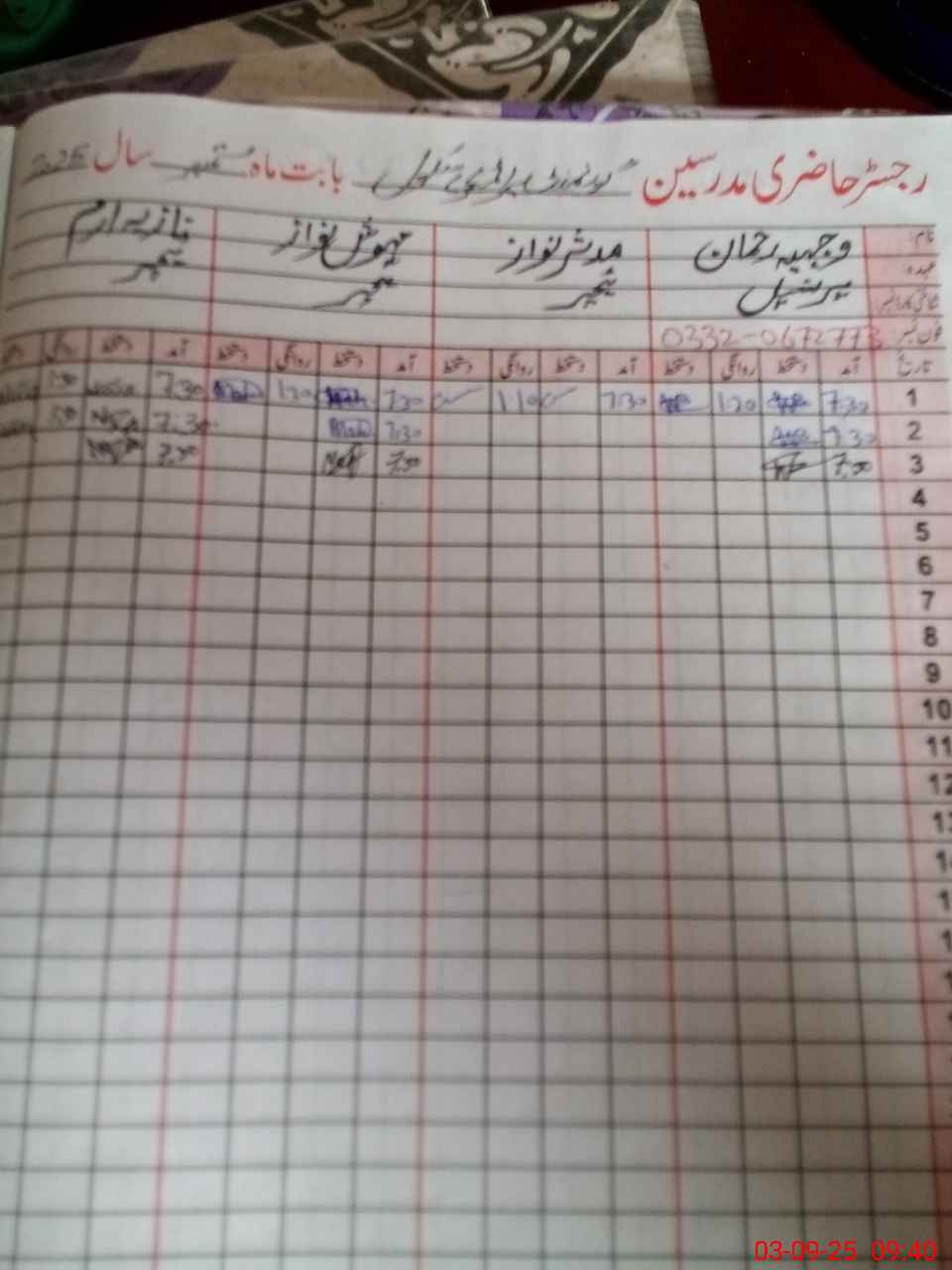 | Name: Wa**** Re**** Designation: (School Headmaster's/Headmistress's) Prinp Phone/Cell Number: 03**** |