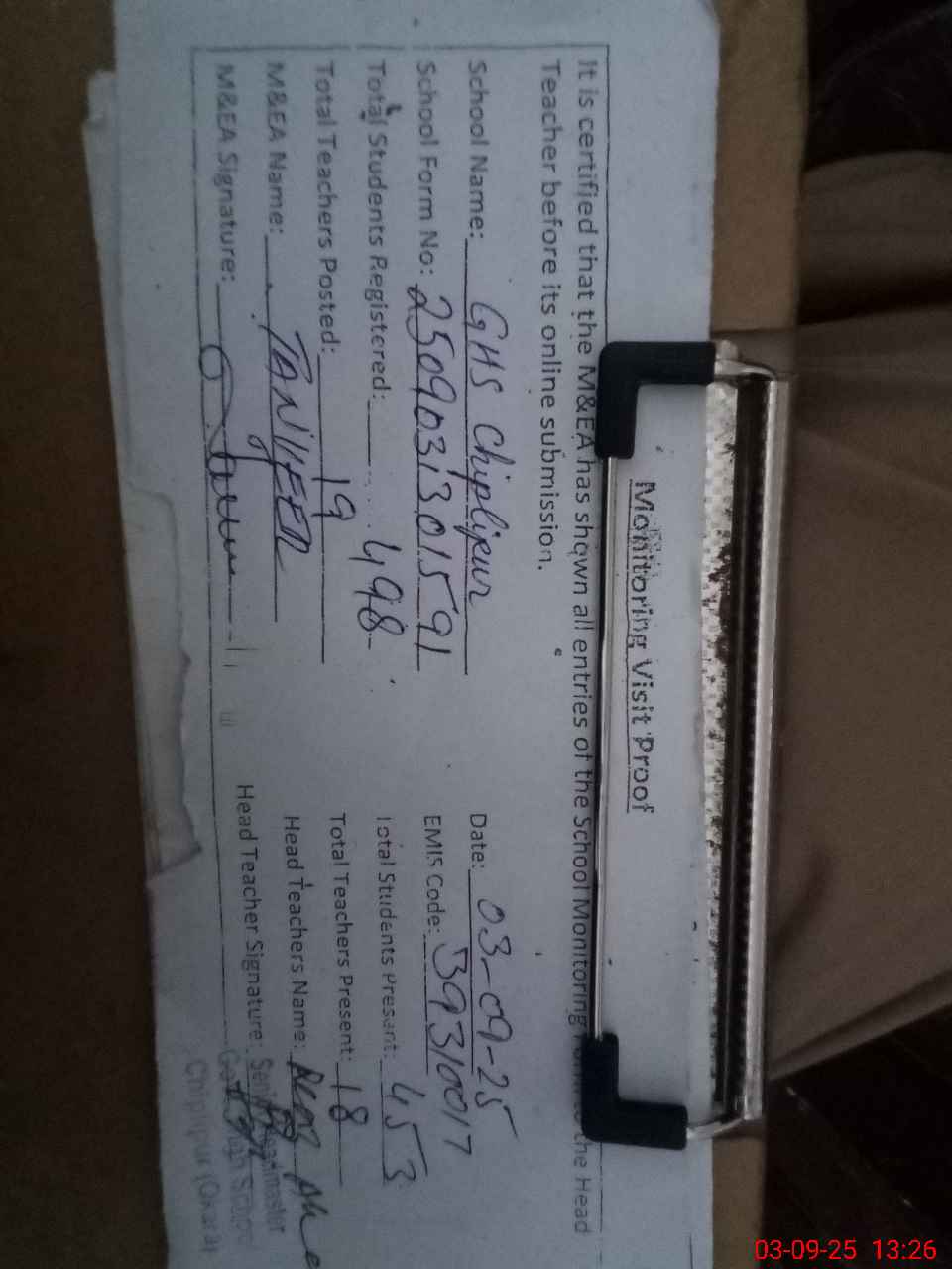 | EMIS Code: 39310017 | Name of School: GHS CHIPLI PUR | |||