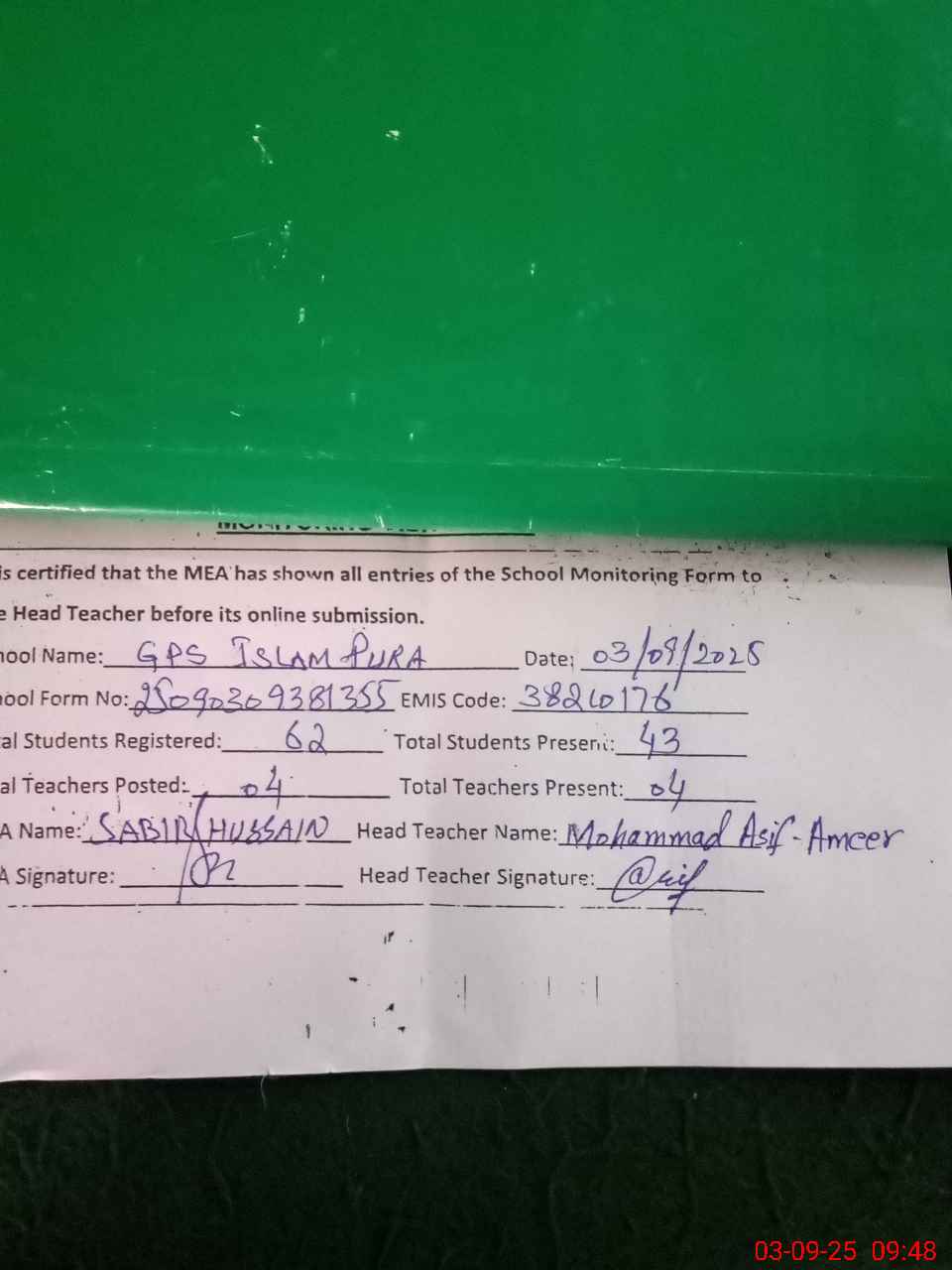 | EMIS Code: 38210176 | Name of School: GPS ISLAM PURA KUSHAB | |||
