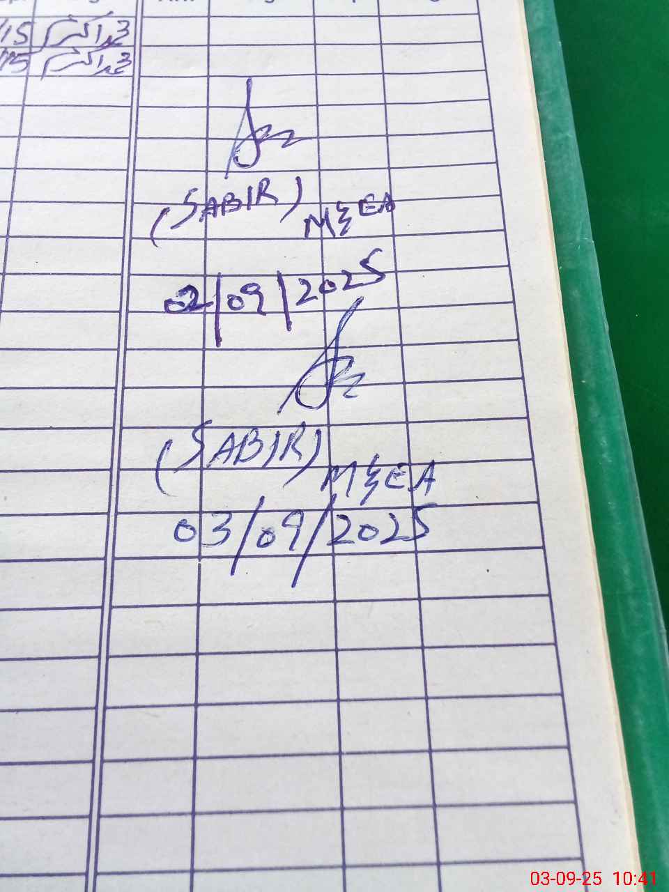 | Monitoring Date: 03-09-2025 | Start Time: 03-09-2025 10:25 AM | End Time: 03-09-2025 10:50 AM | Name of MEA: SA**** HU**** | |