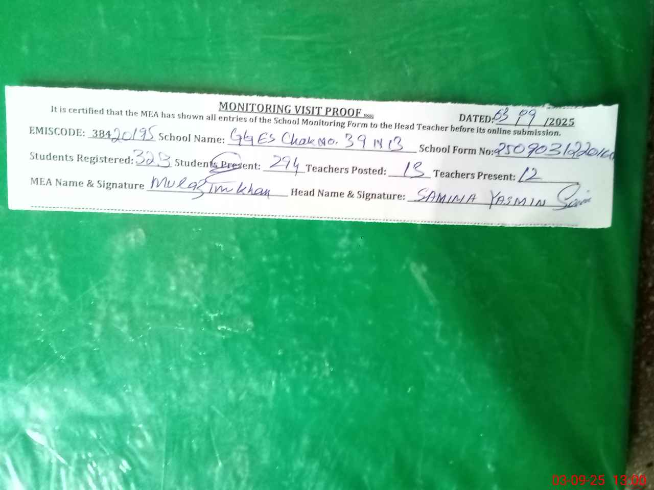 | EMIS Code: 38420195 | Name of School: GGES CHAK NO.39 NB SGD | |||
