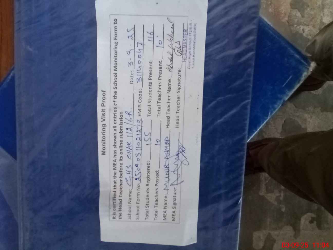 | EMIS Code: 31140047 | Name of School: GHS CHAK NO. 112/6-R | |||