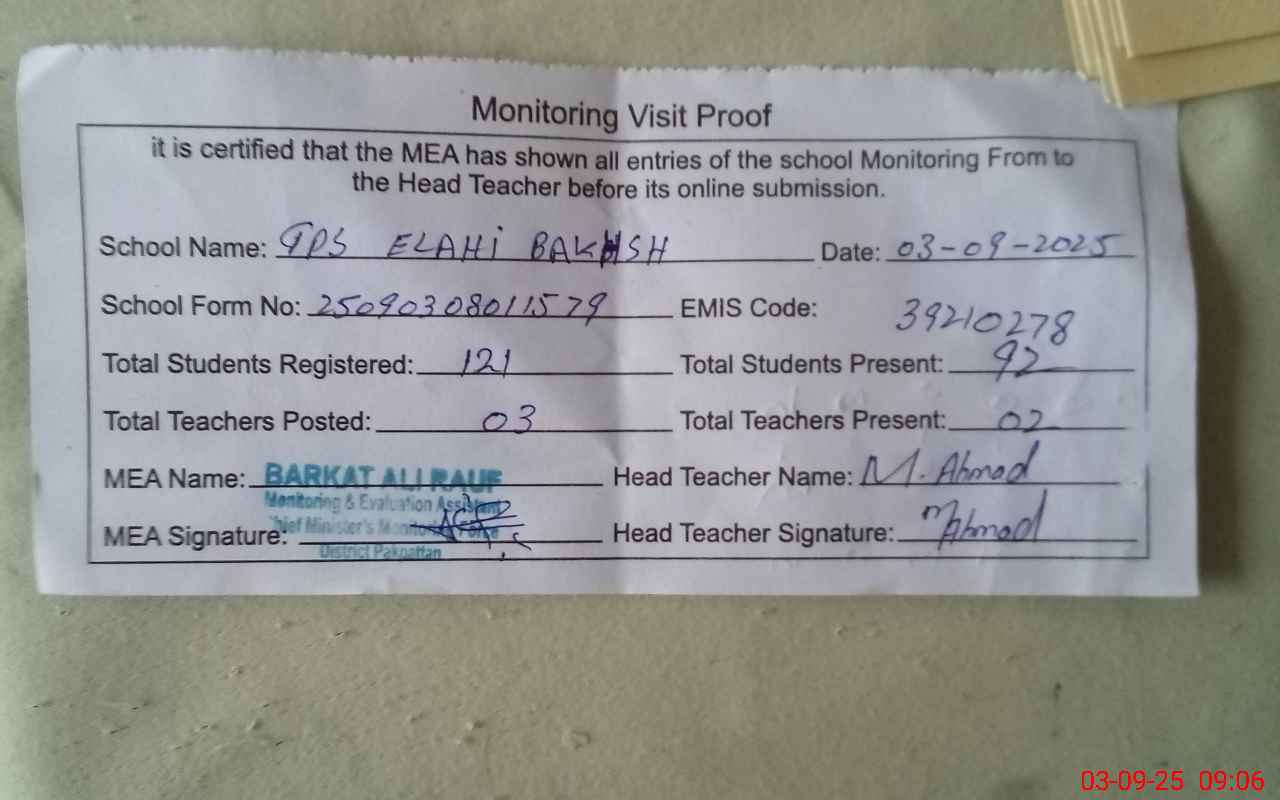 | EMIS Code: 39210278 | Name of School: GPS ELAHI BAKHSH | |||