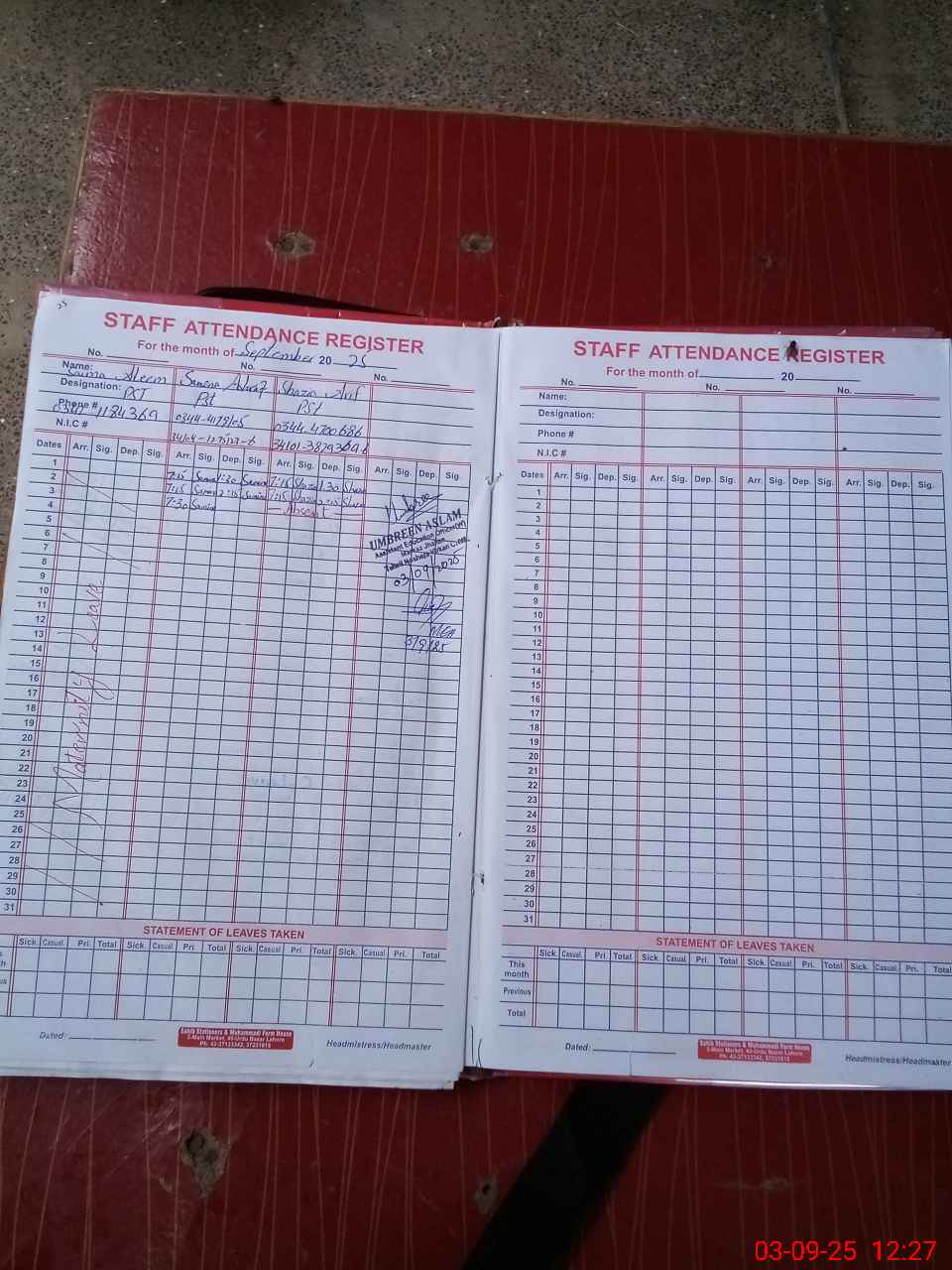 | Name: Sa**** Al**** Designation: (School Headmaster's/Headmistress's) PST Phone/Cell Number: 03**** |