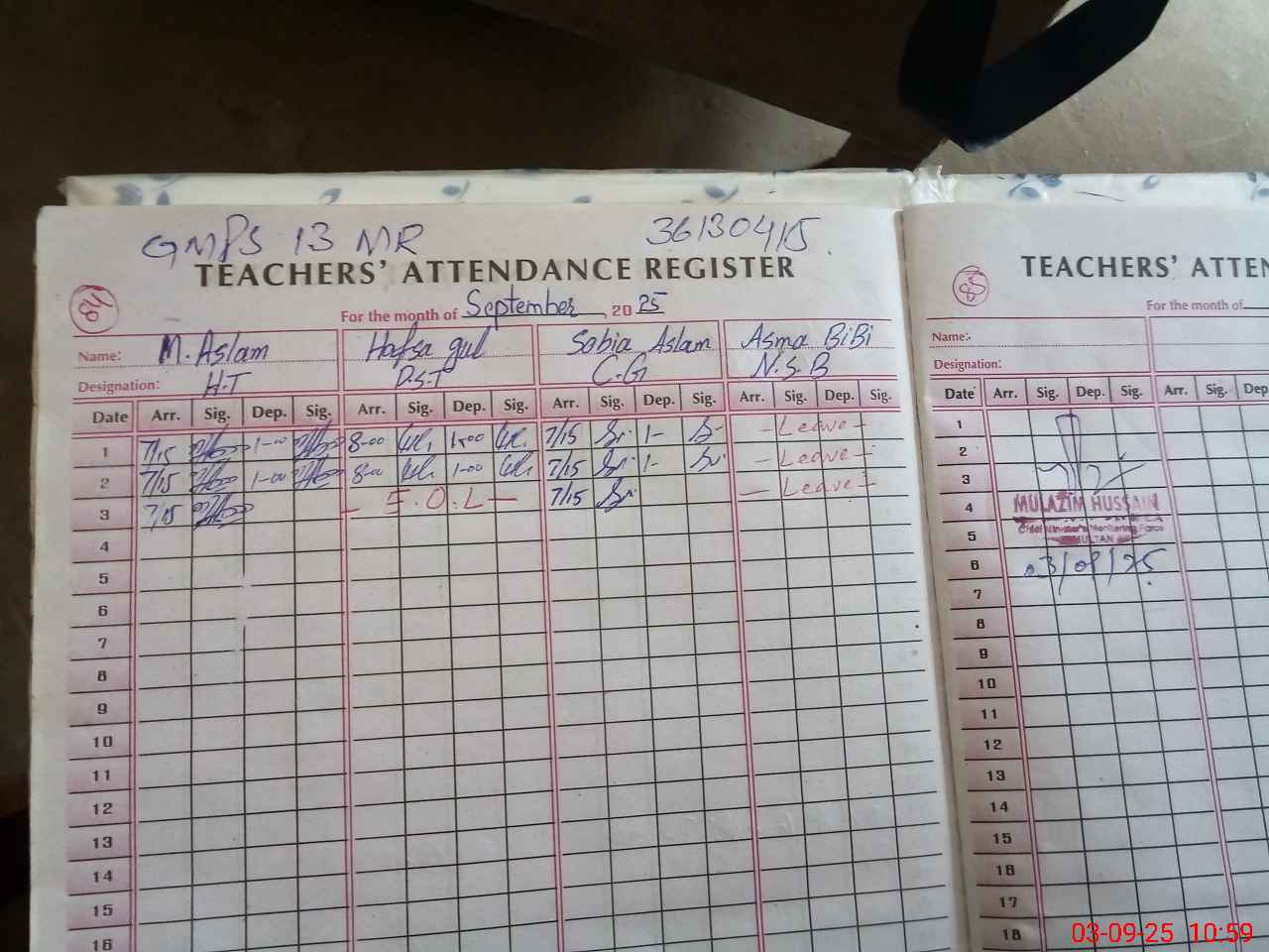 | Name: MU**** AS**** Designation: (School Headmaster's/Headmistress's) HEADMASTER Phone/Cell Number: 03**** |
