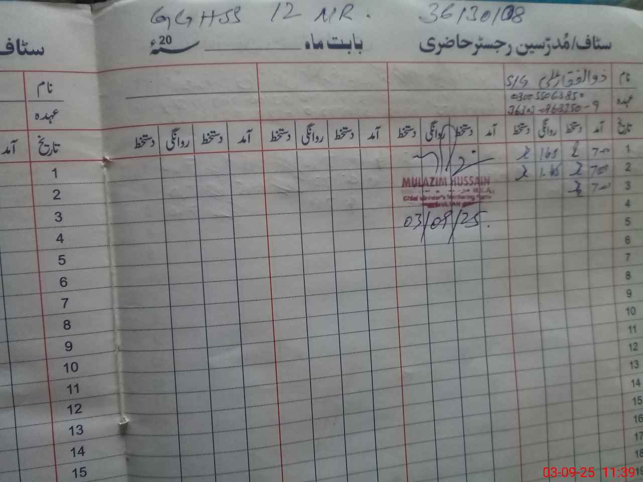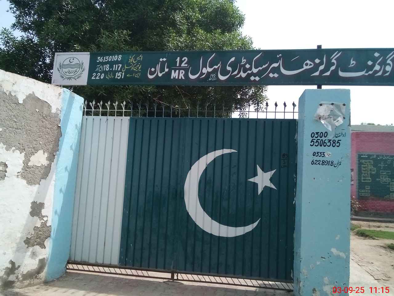 | EMIS Code: 36130108 | Name of School: GGHSS CHAK NO. 12-MR SADDAR MULTAN | |||
