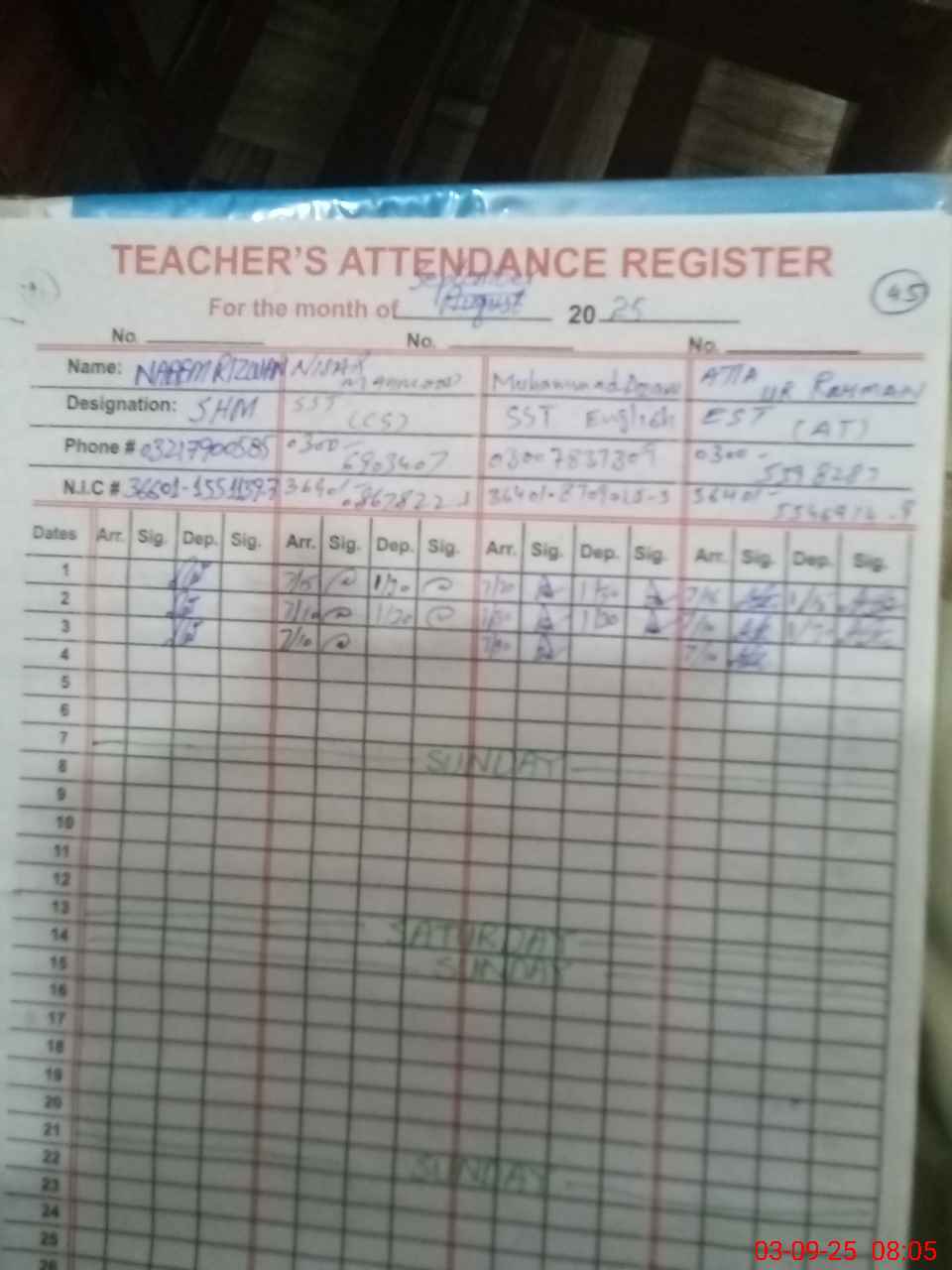 | Name: NI**** ME**** Designation: (School Headmaster's/Headmistress's) SST (C.S) Phone/Cell Number: 03**** |