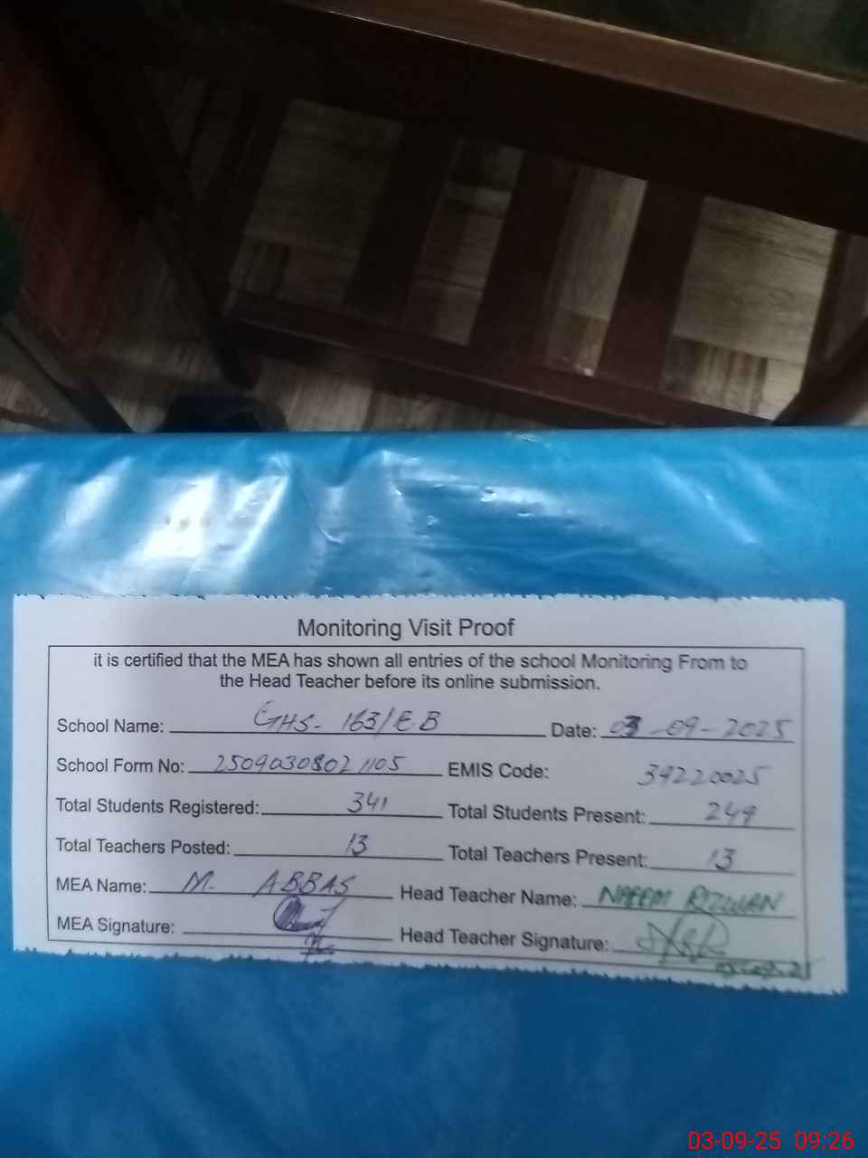 | EMIS Code: 39220025 | Name of School: GHS 163/EB | |||