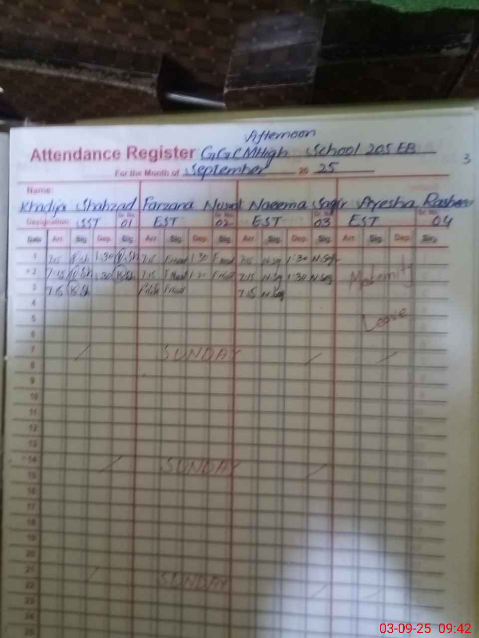 | 36**** | Ay**** Ra**** | Regular | 30 | 0 | 0 | 30 | 0 | 0 | 0 | 0 | 0 | Maternity | |