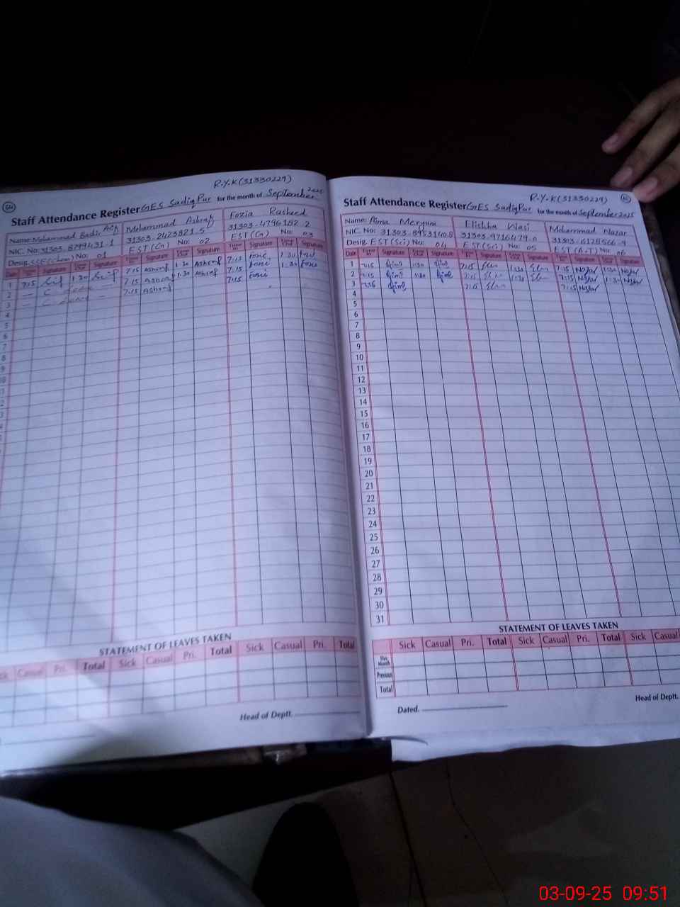 | 31**** | Um**** Ma**** | 4 | 2 | 0 | 0 | 0 | 0 | 0 | 0 | 0 | 0 | 0 | Absent (Un-Authorized) |