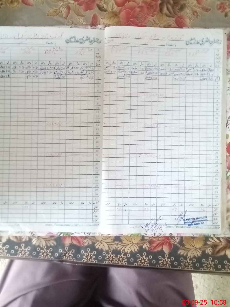 | CNIC | Full Name | Designation | R/C | Absence During Last Calender Month |