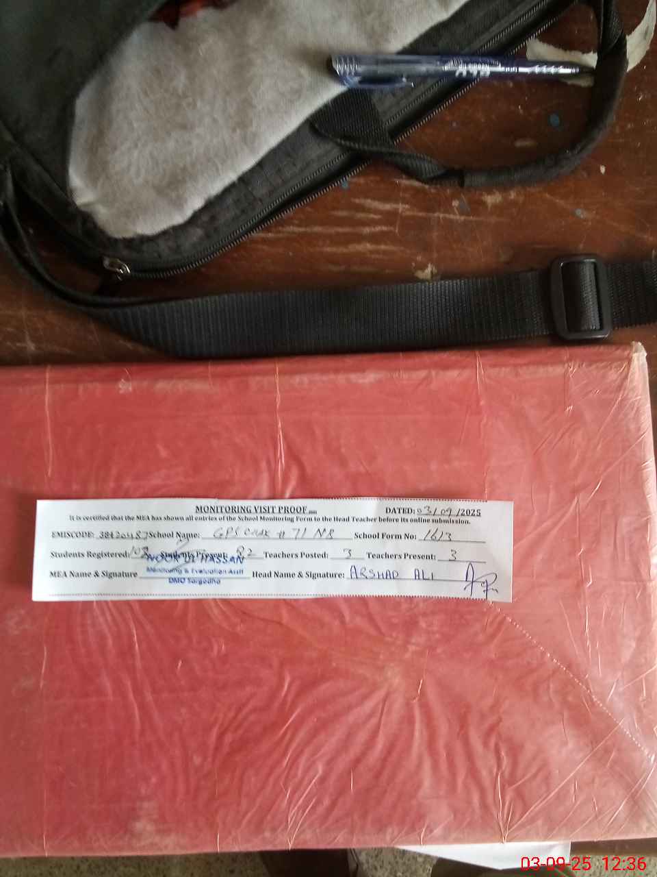 | EMIS Code: 38420487 | Name of School: GPS CHAK NO.71 NB | |||