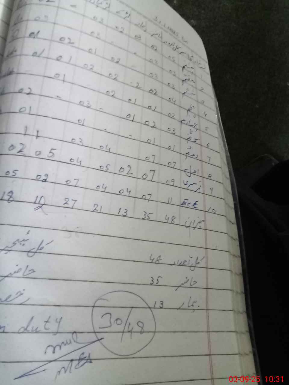 | Leave | Duty | Absent | Maternity | Medical | Ex- Pak |