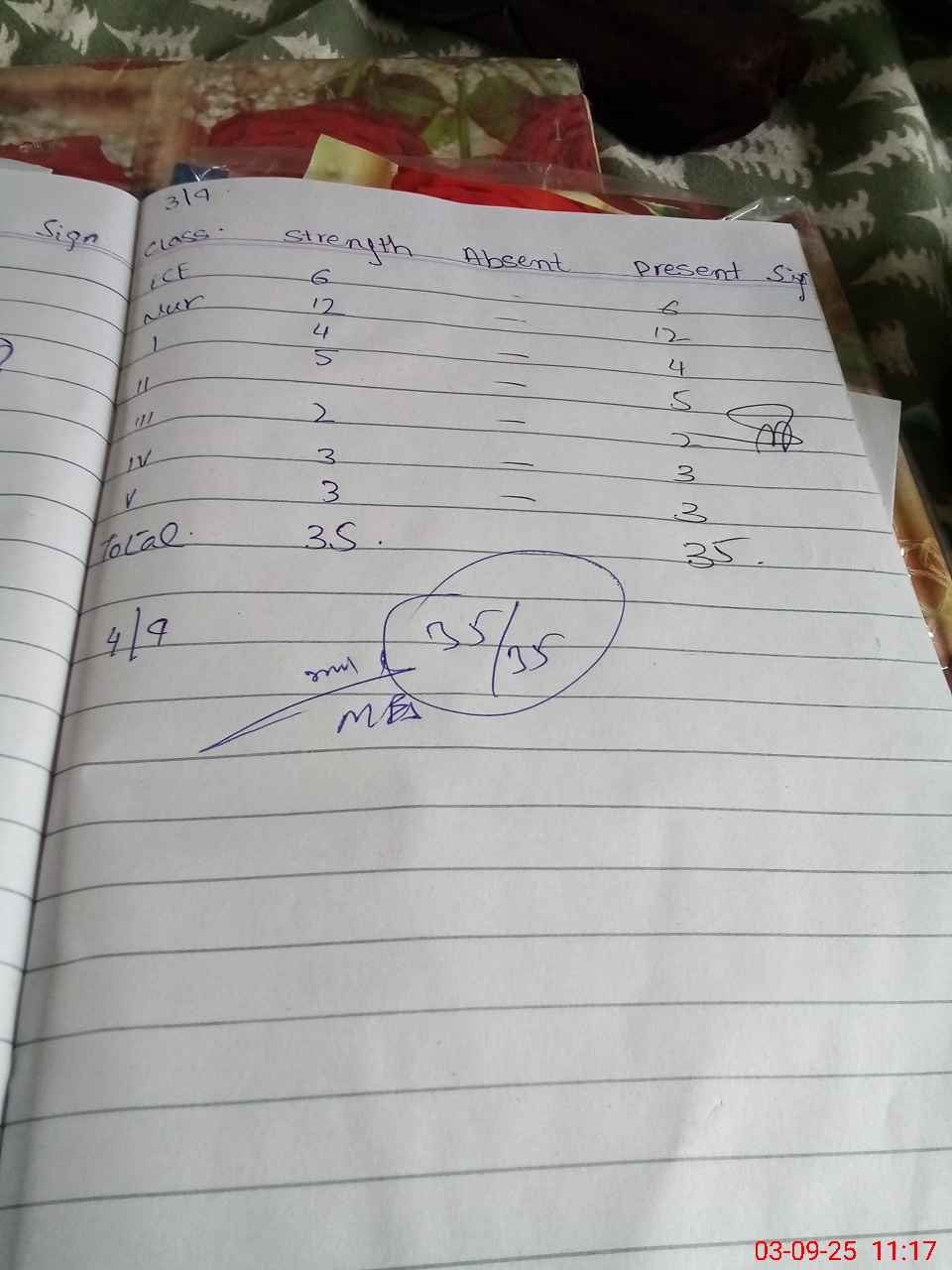 | Total Students Present | 6 | 0 | 12 | 4 | 5 | 2 | 3 | 3 | 35 | |||||||