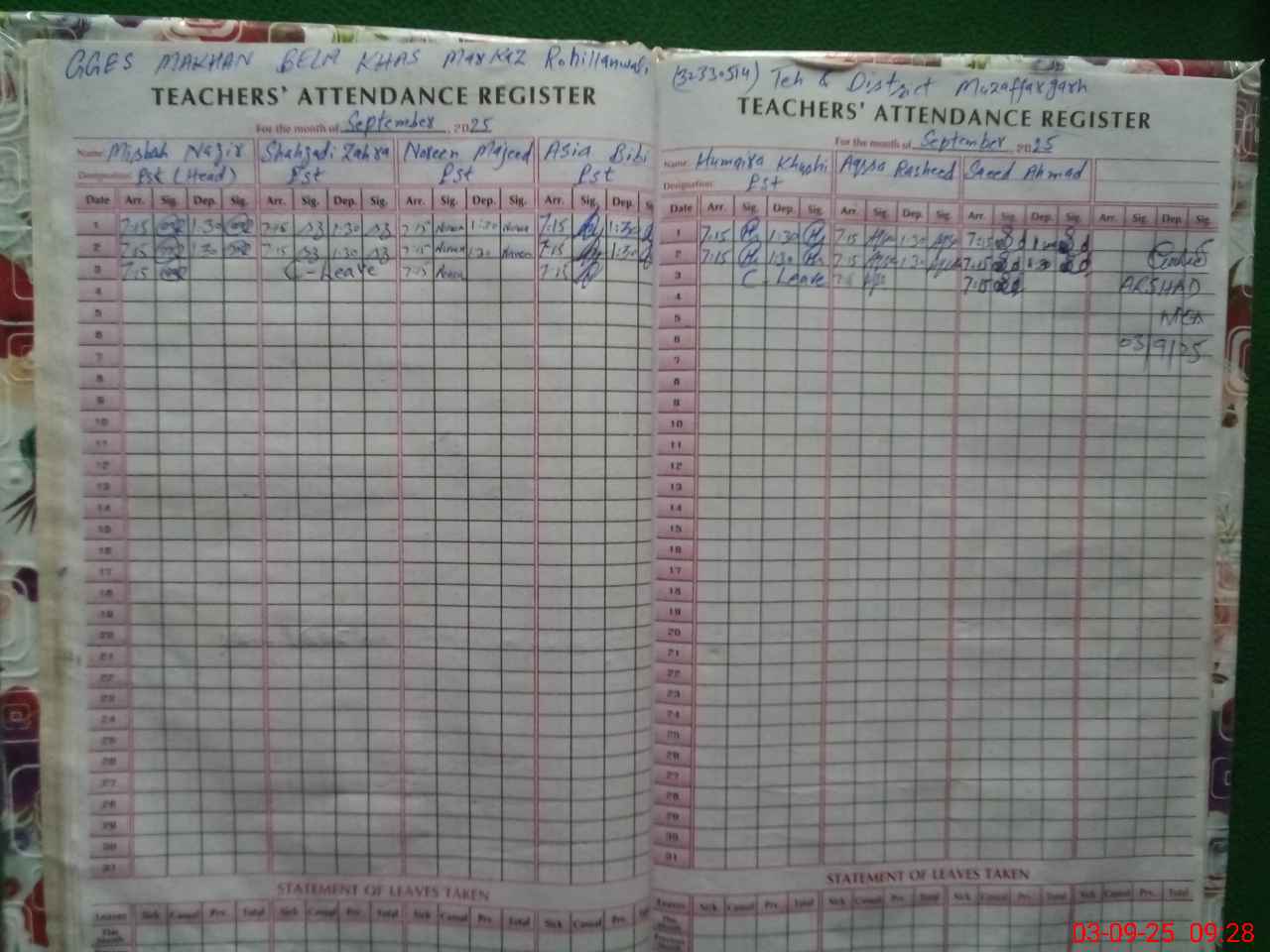 | District: MUZAFFARGARH | Tehsil: MUZAFFARGARH | Markaz: ROHILLAN WALI- FEMALE | Level: Middle | |