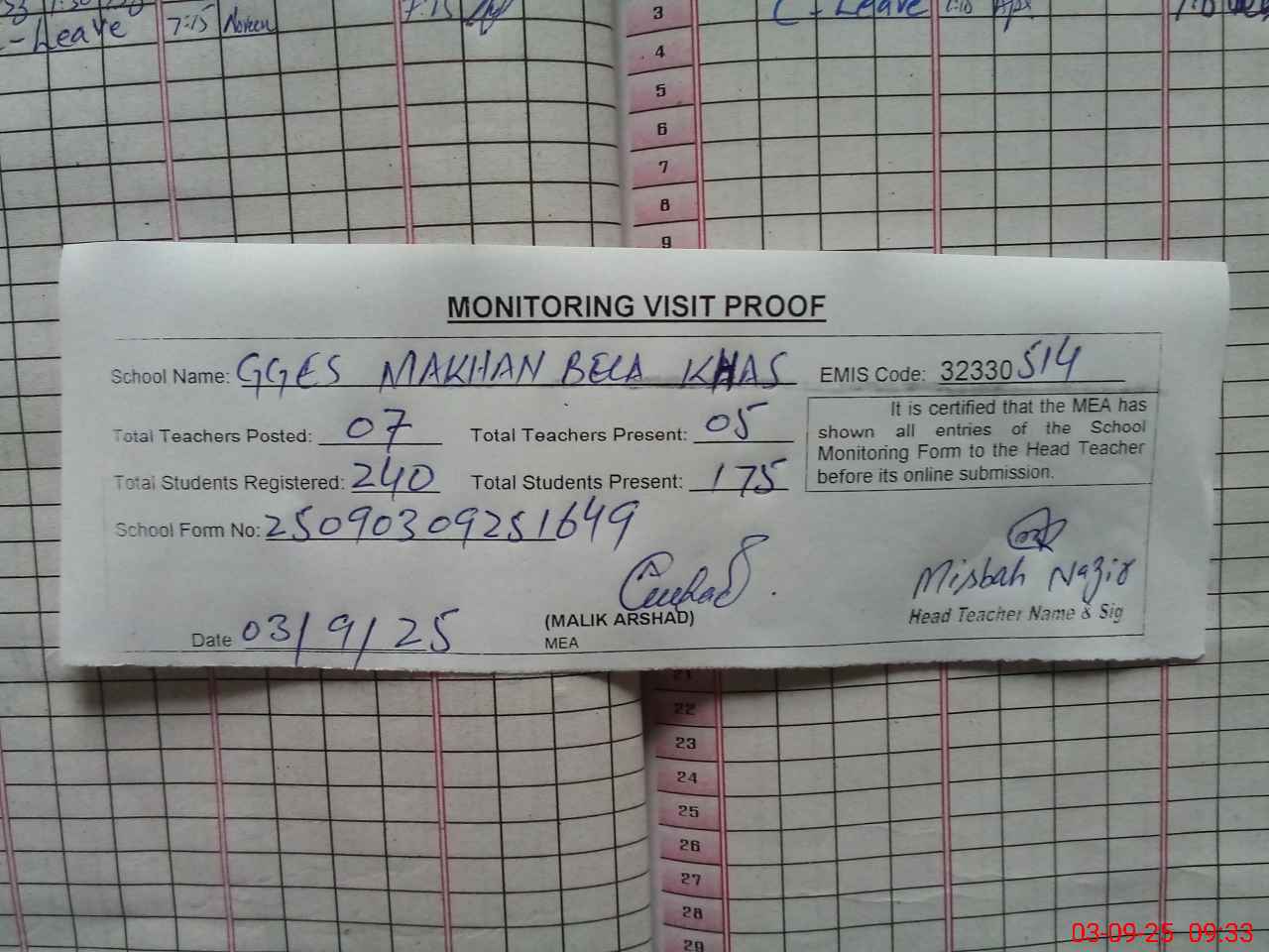 | EMIS Code: 32330514 | Name of School: GGES MAKHAN BELA KHAS | |||